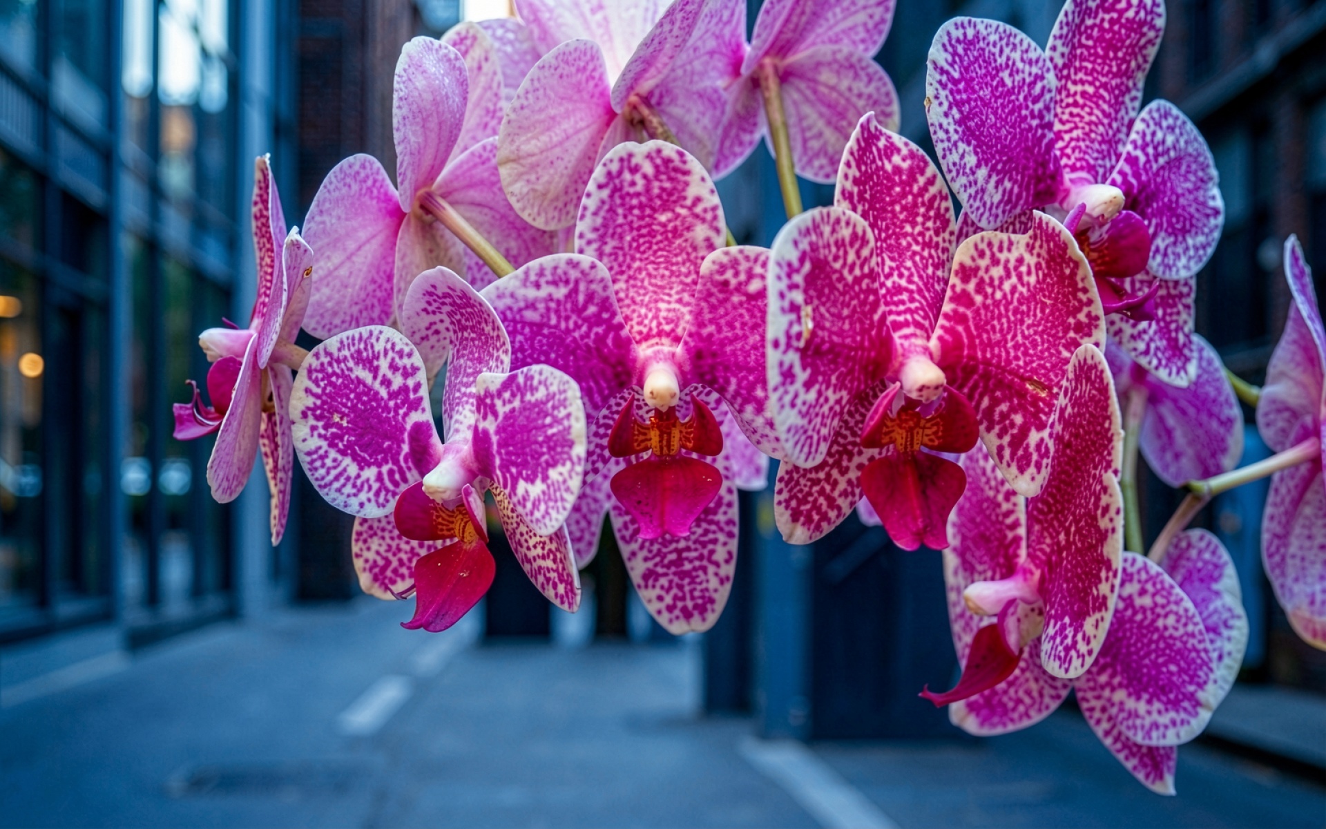 Розовые орхидеи с пятнами в городском окружении