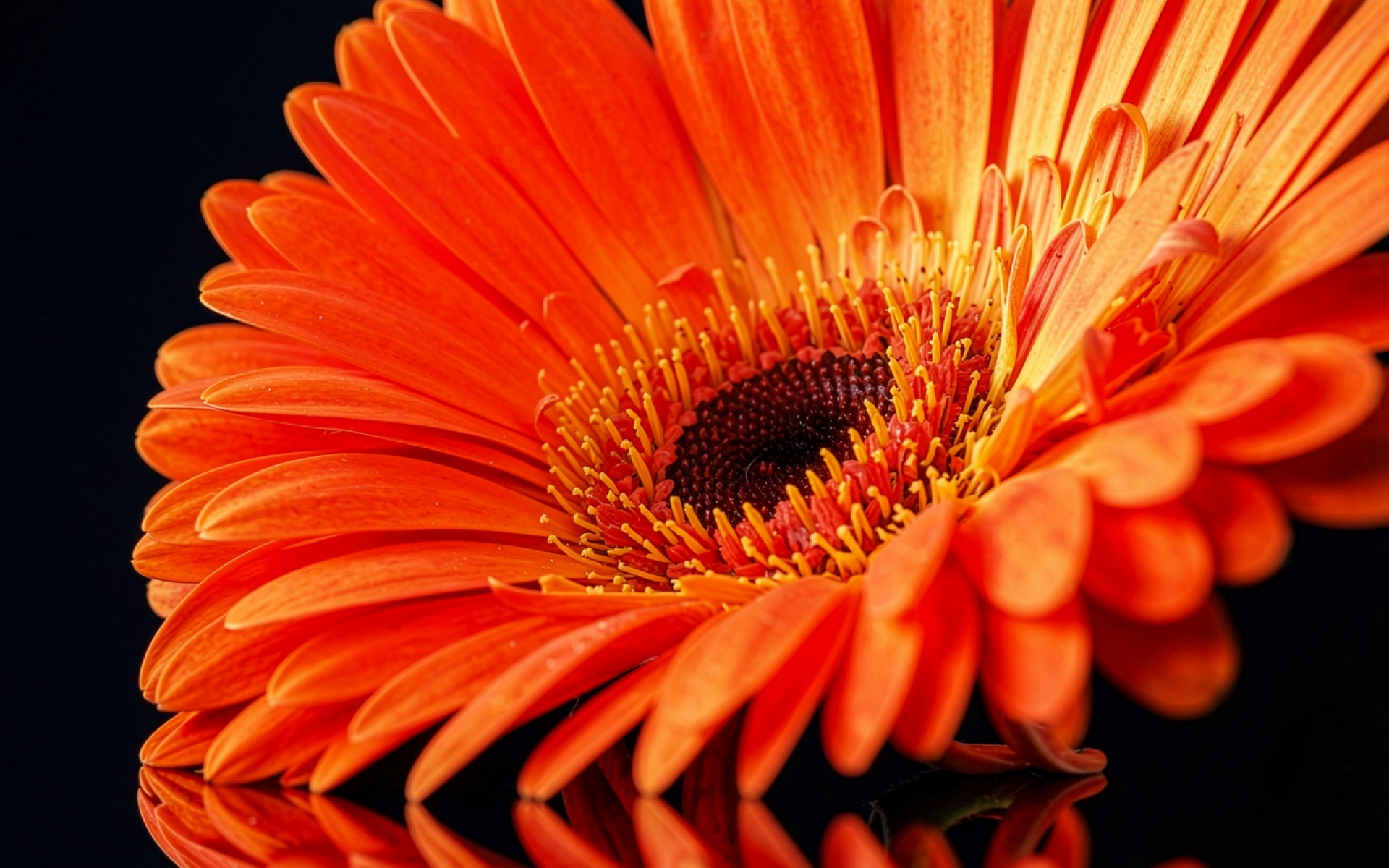 Оранжевая гербера на черном фоне макро