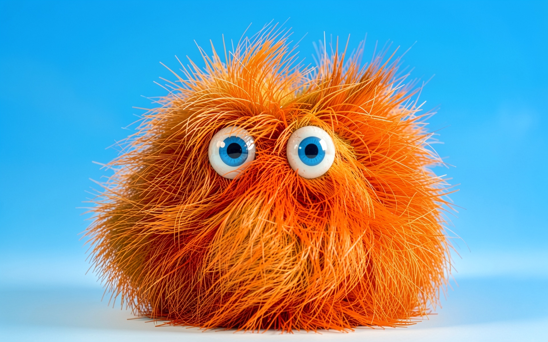 Оранжевый пушистый монстр с голубыми глазами