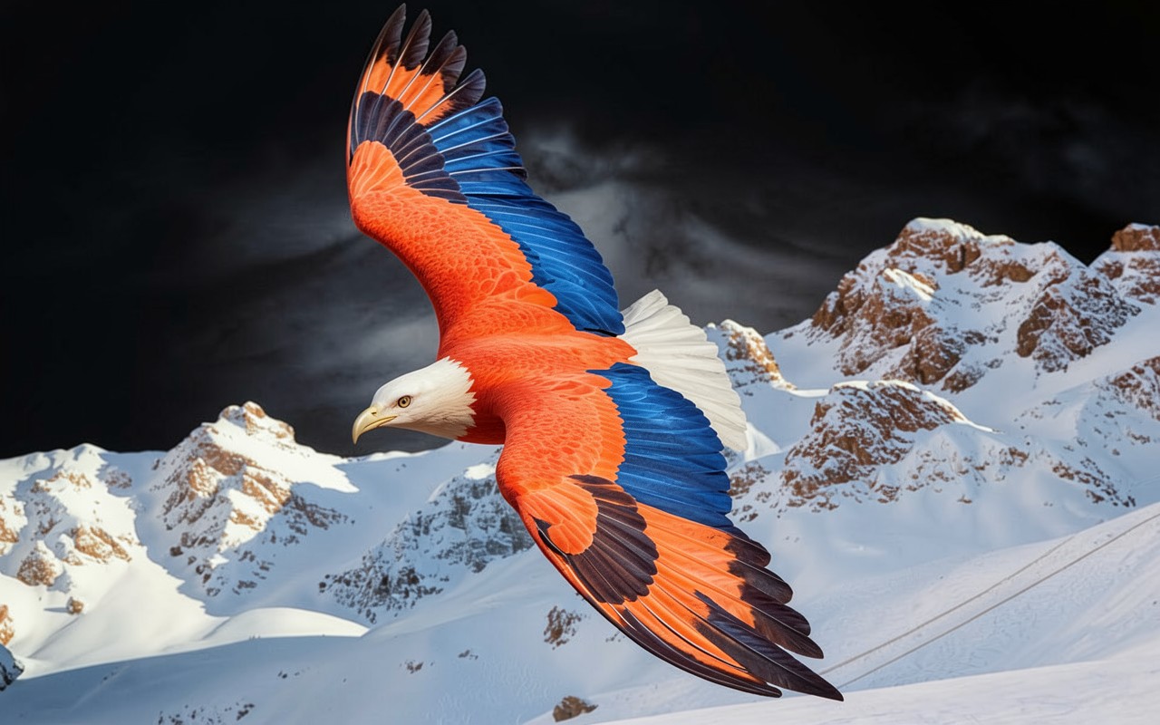 Орел красно-синий в заснеженных горах