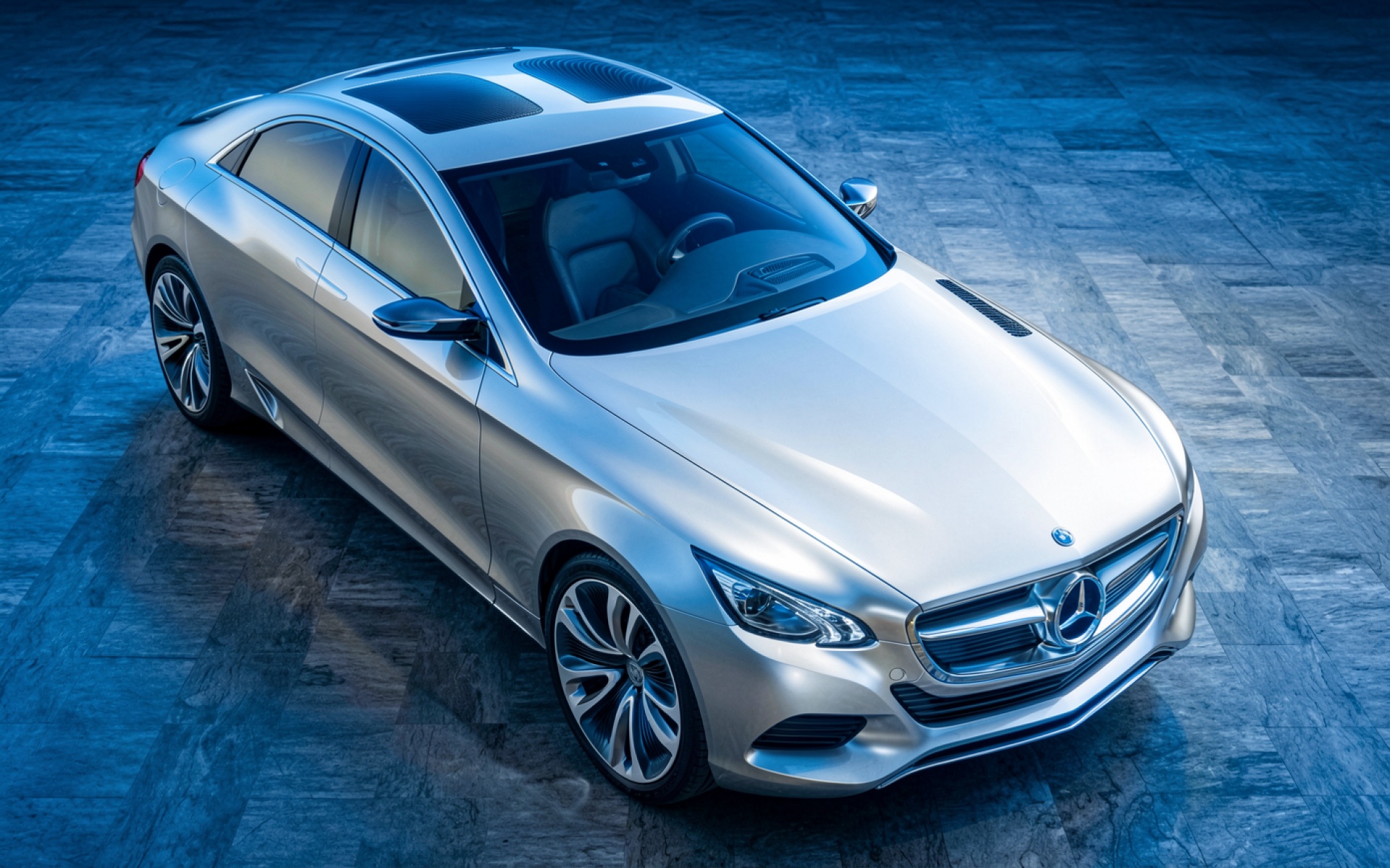 Серебристый автомобиль Mercedes в синем студийном освещении