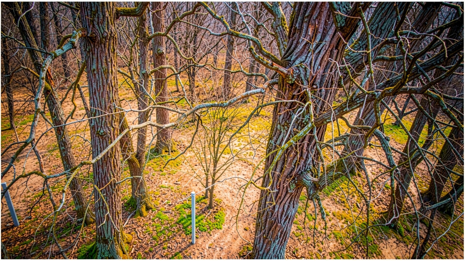 Осенний лес с корой старых деревьев