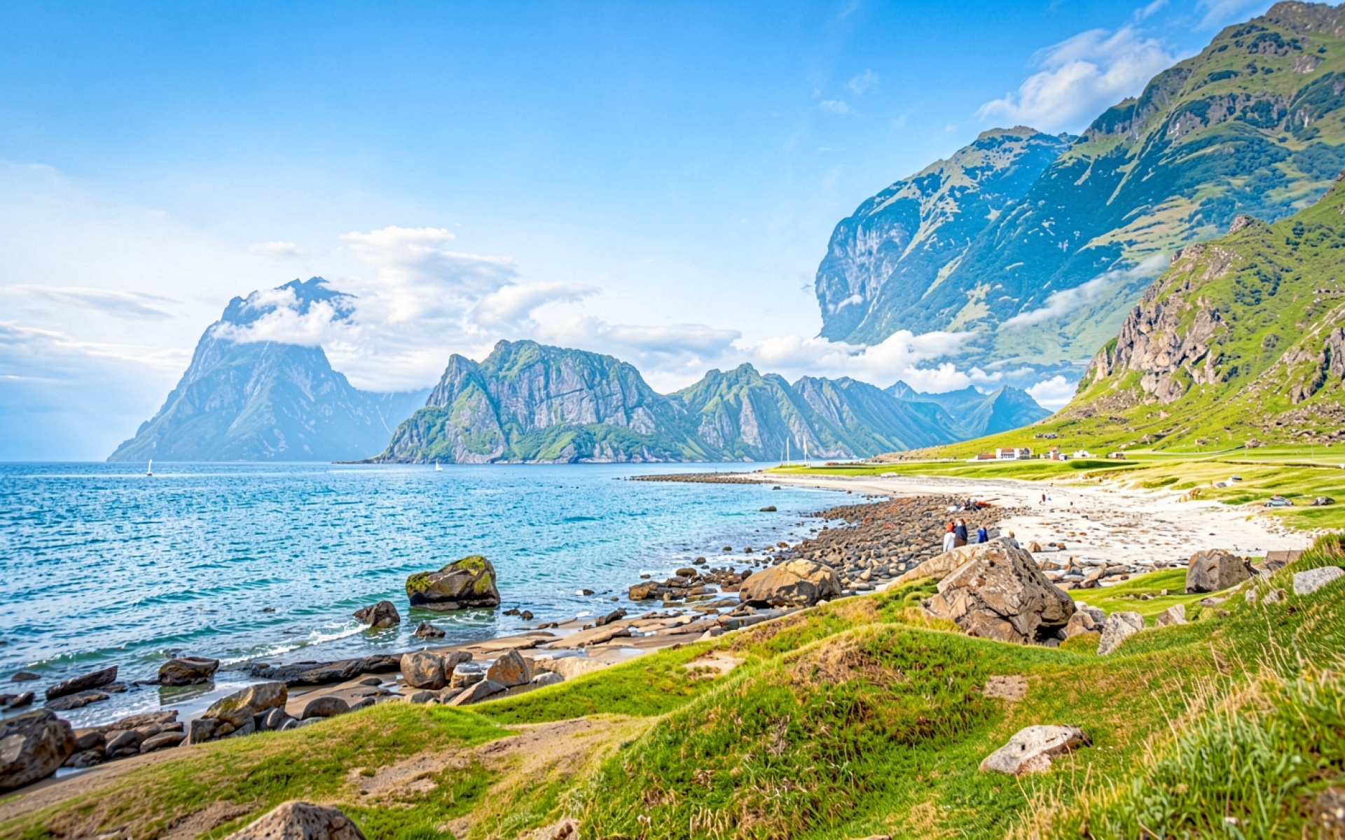 Пейзаж Лофотенских островов с бирюзовым морем