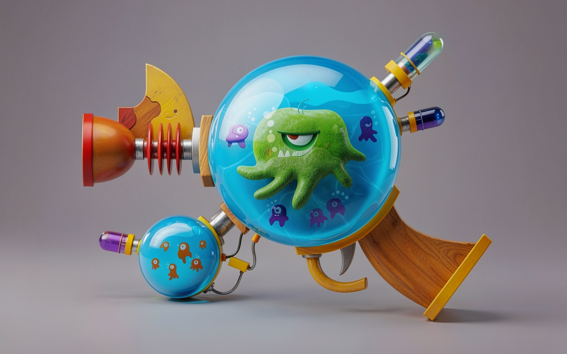 Футуристический пистолет с зеленым осьминогом внутри