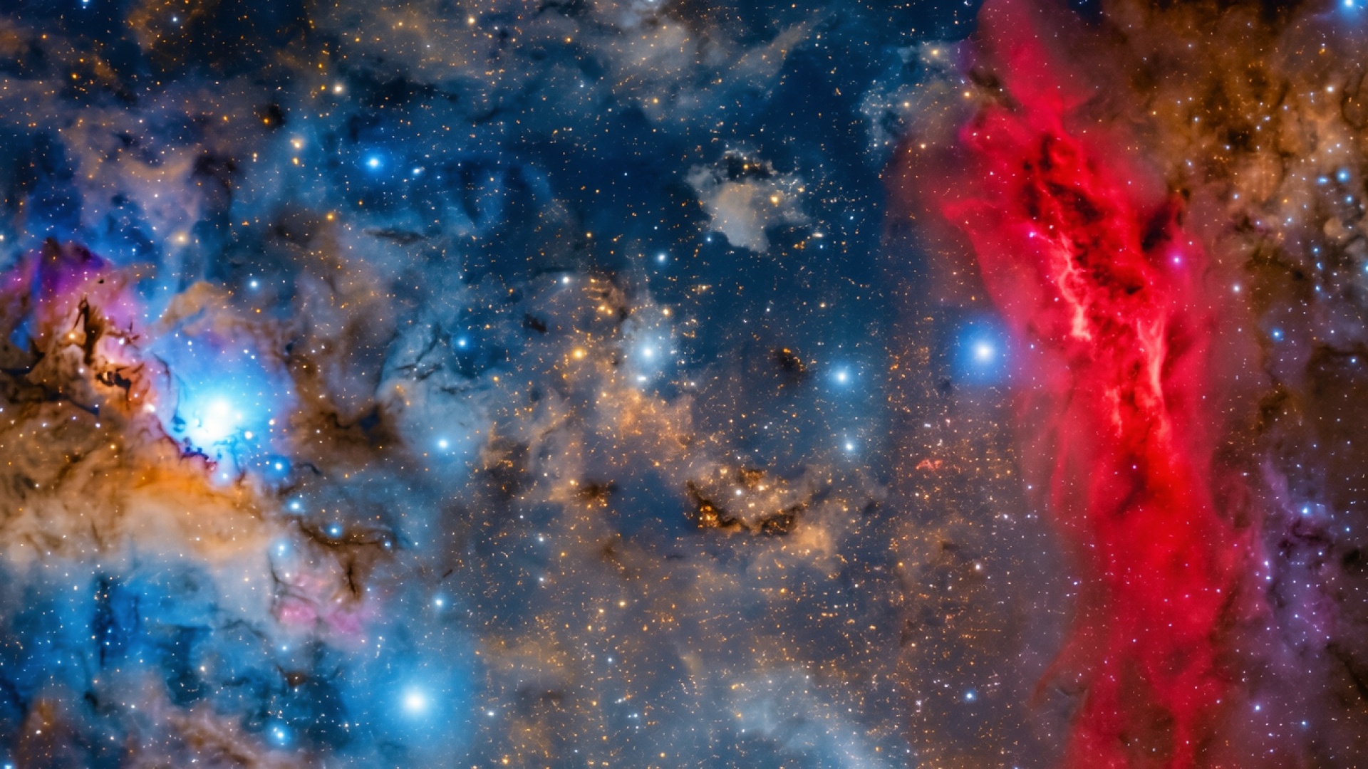 Космическая туманность синих и красных оттенков