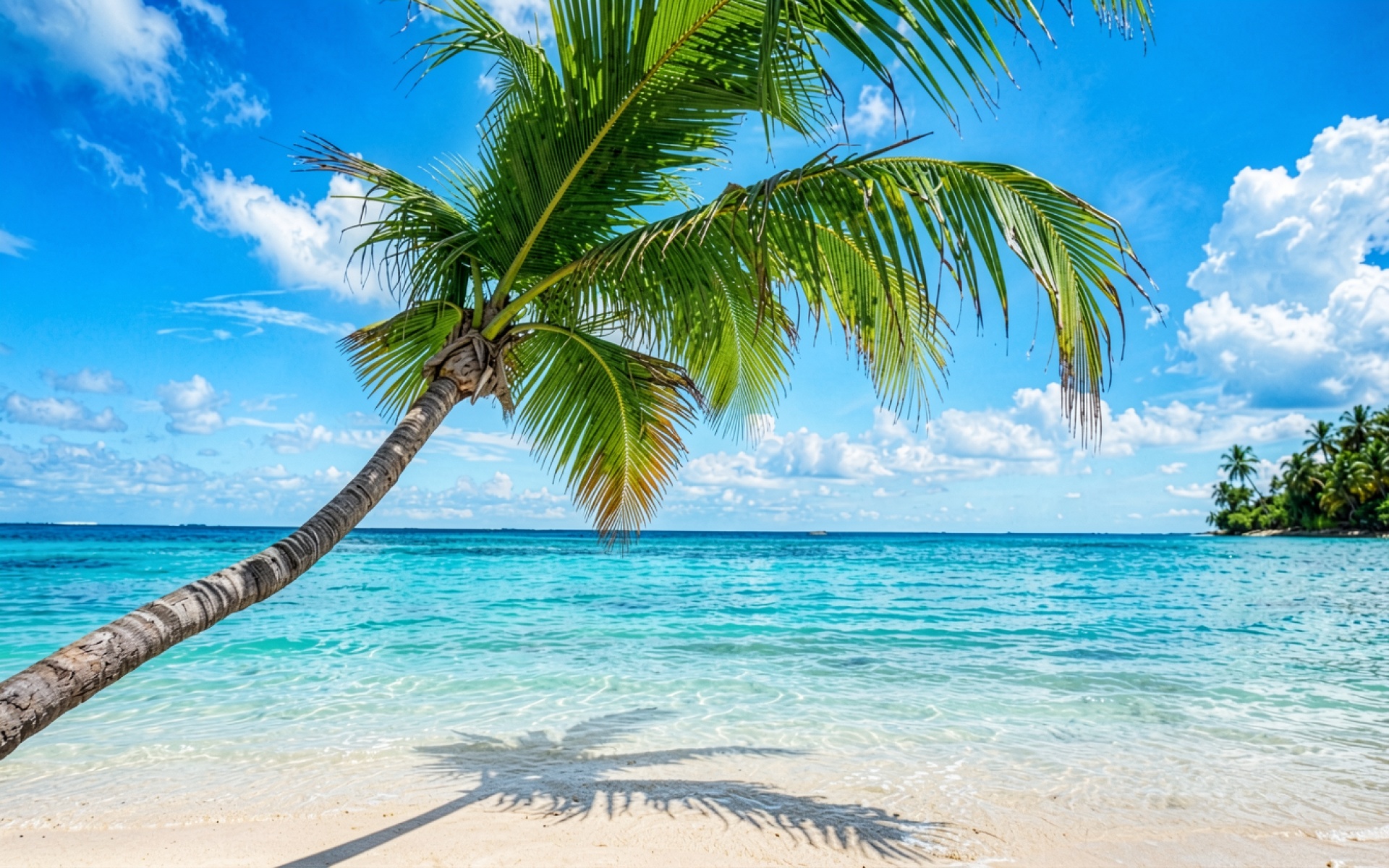 Пальма на тропическом пляже с бирюзовым океаном