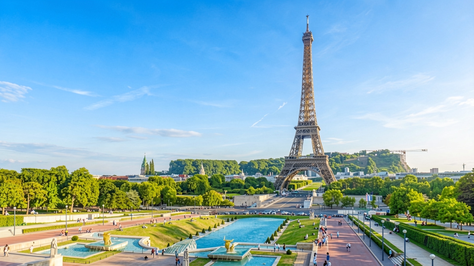 Эйфелева башня в солнечный день в Париже