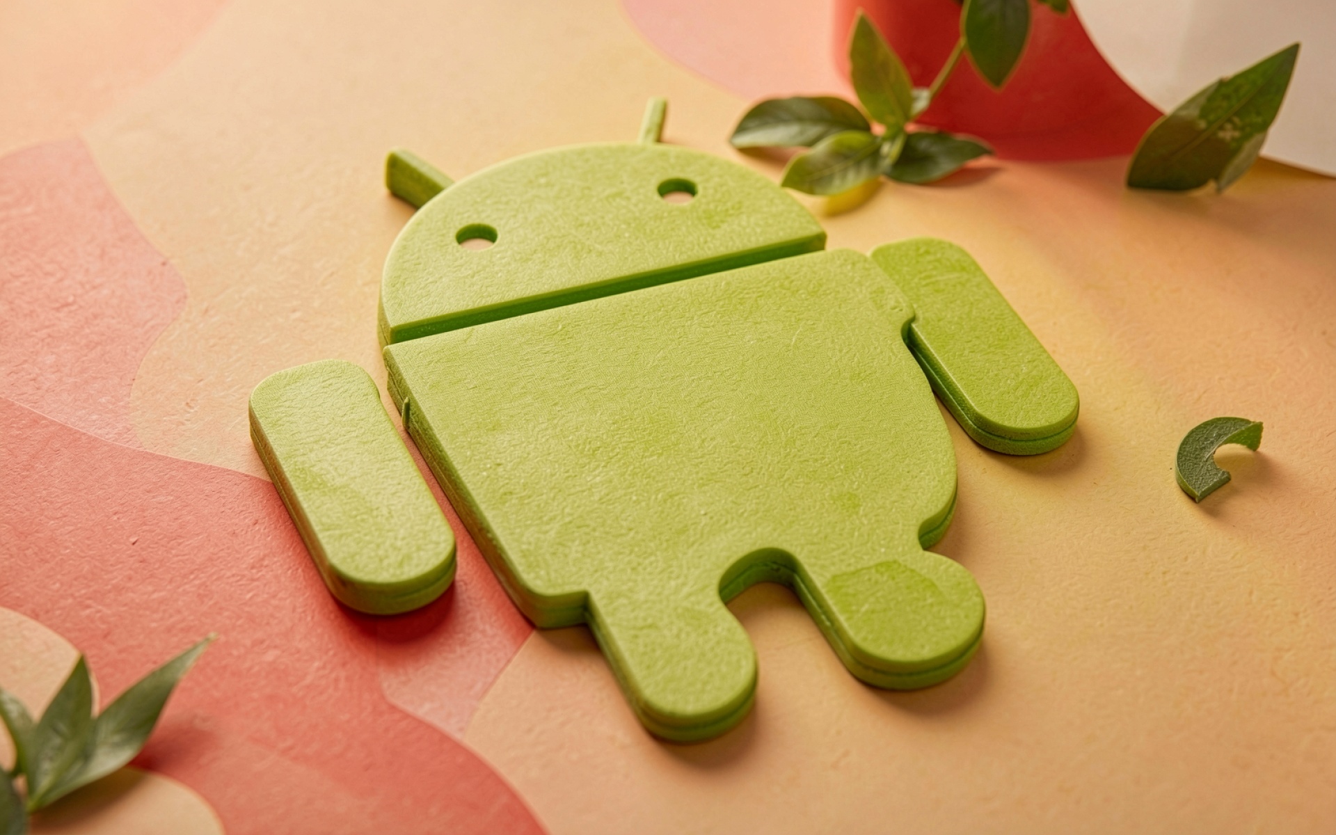 Фигурка Android зеленого цвета на пастельном фоне