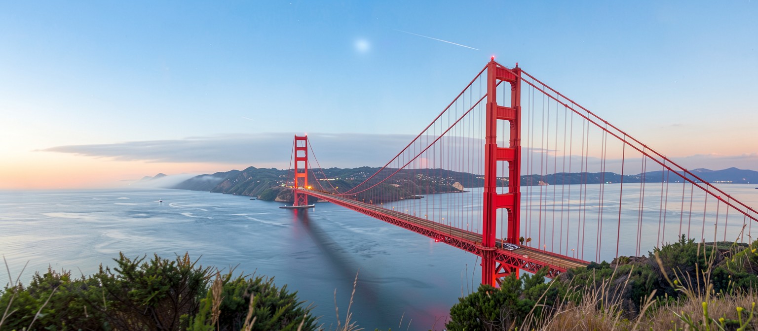 Мост Золотые Ворота закатный пейзаж Сан-Франциско
