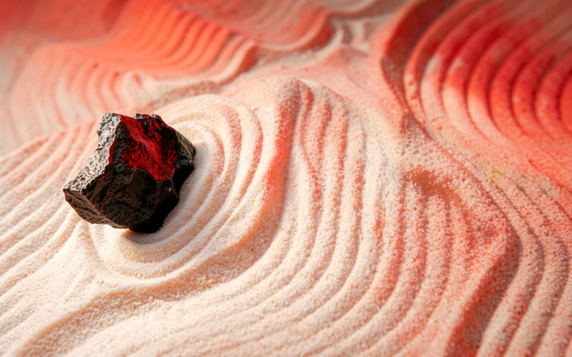 Черный кристалл на красном песке дзен