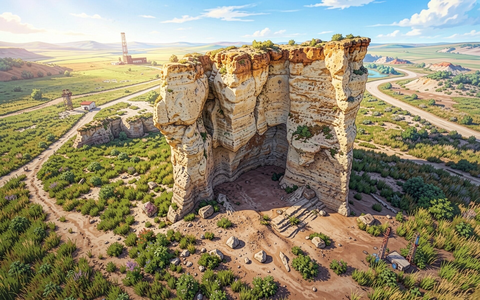 Песчаная скала в солнечной пустынной долине