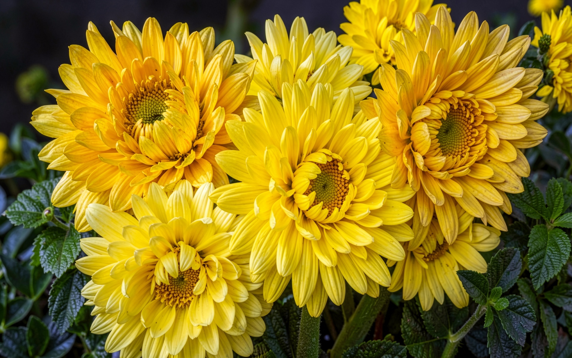 Желтый хризантема крупный план темный фон