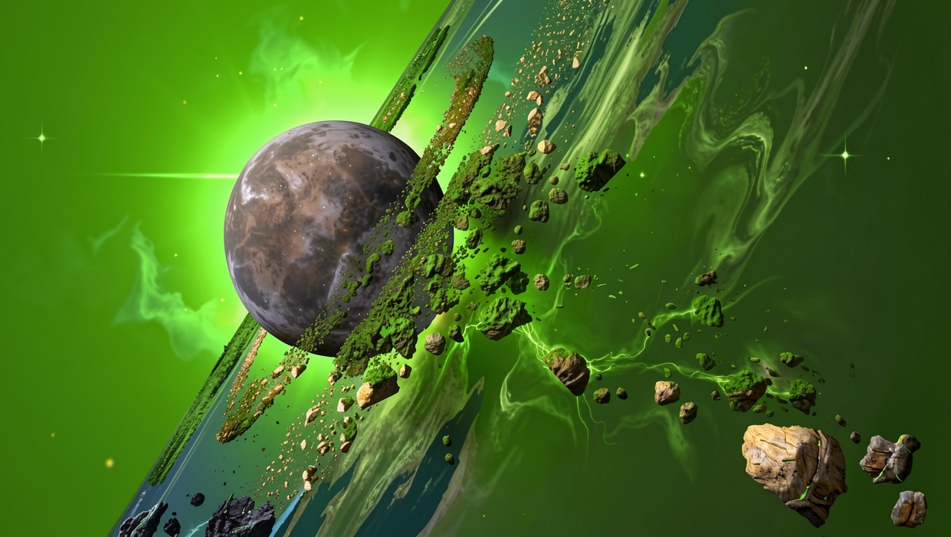 Планета с кольцами из зеленых астероидов