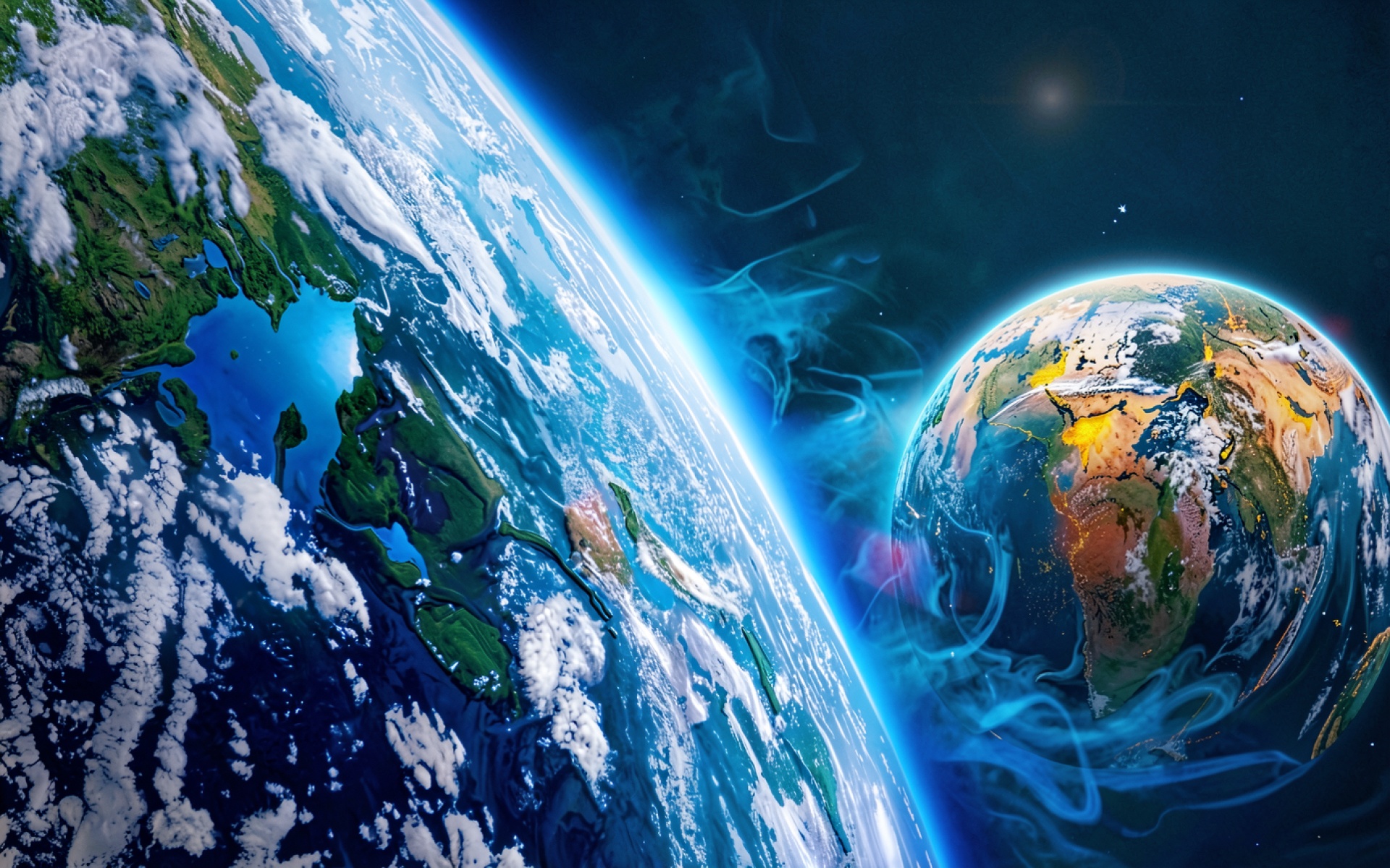 Две планеты Земля в глубоком космосе