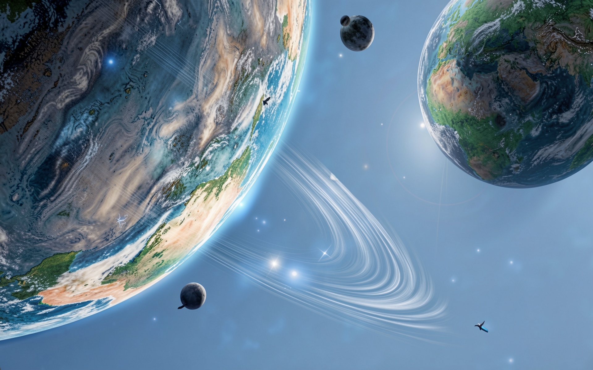Две планеты в голубом космическом пространстве
