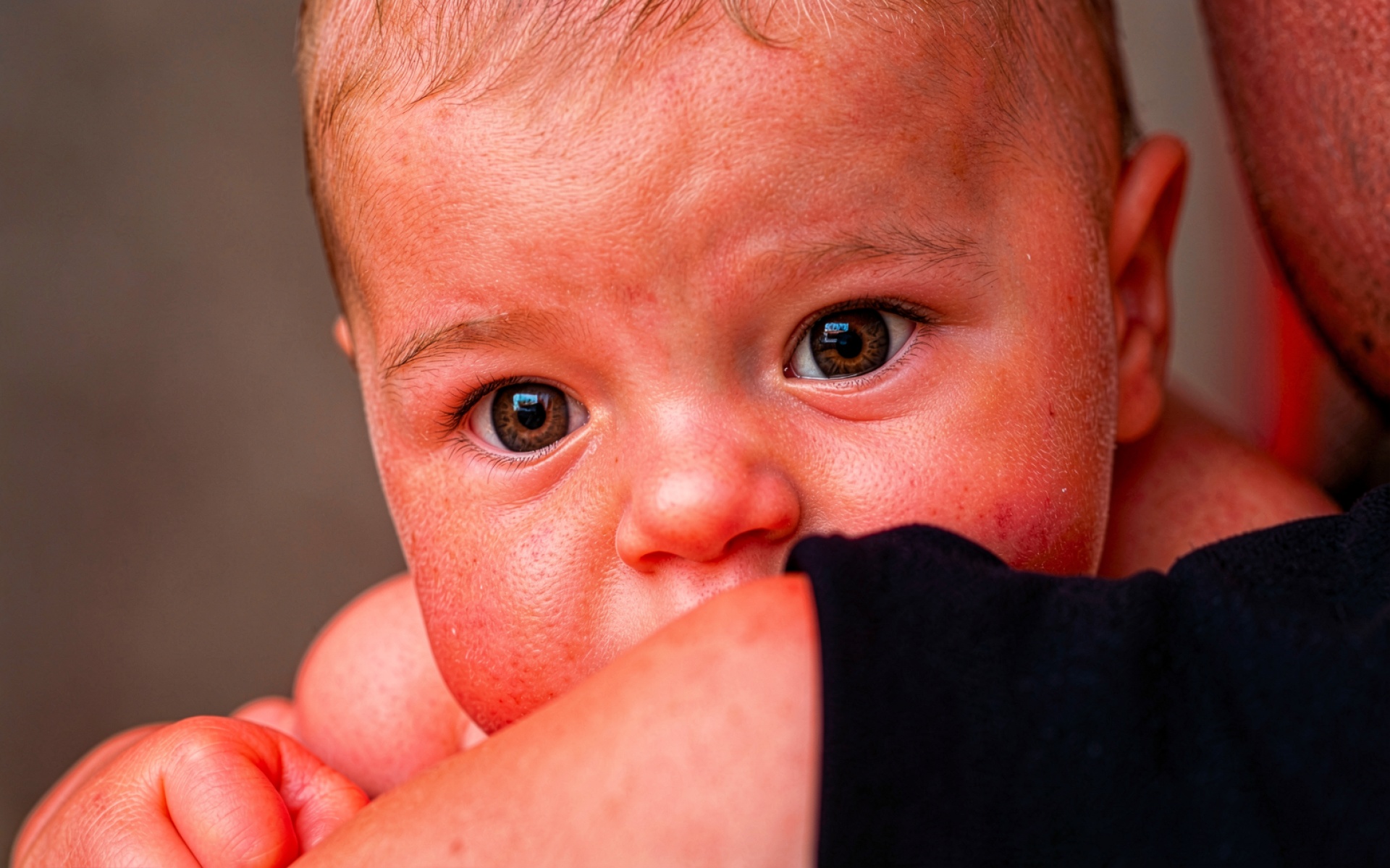 Портрет младенца с карими глазами крупным планом