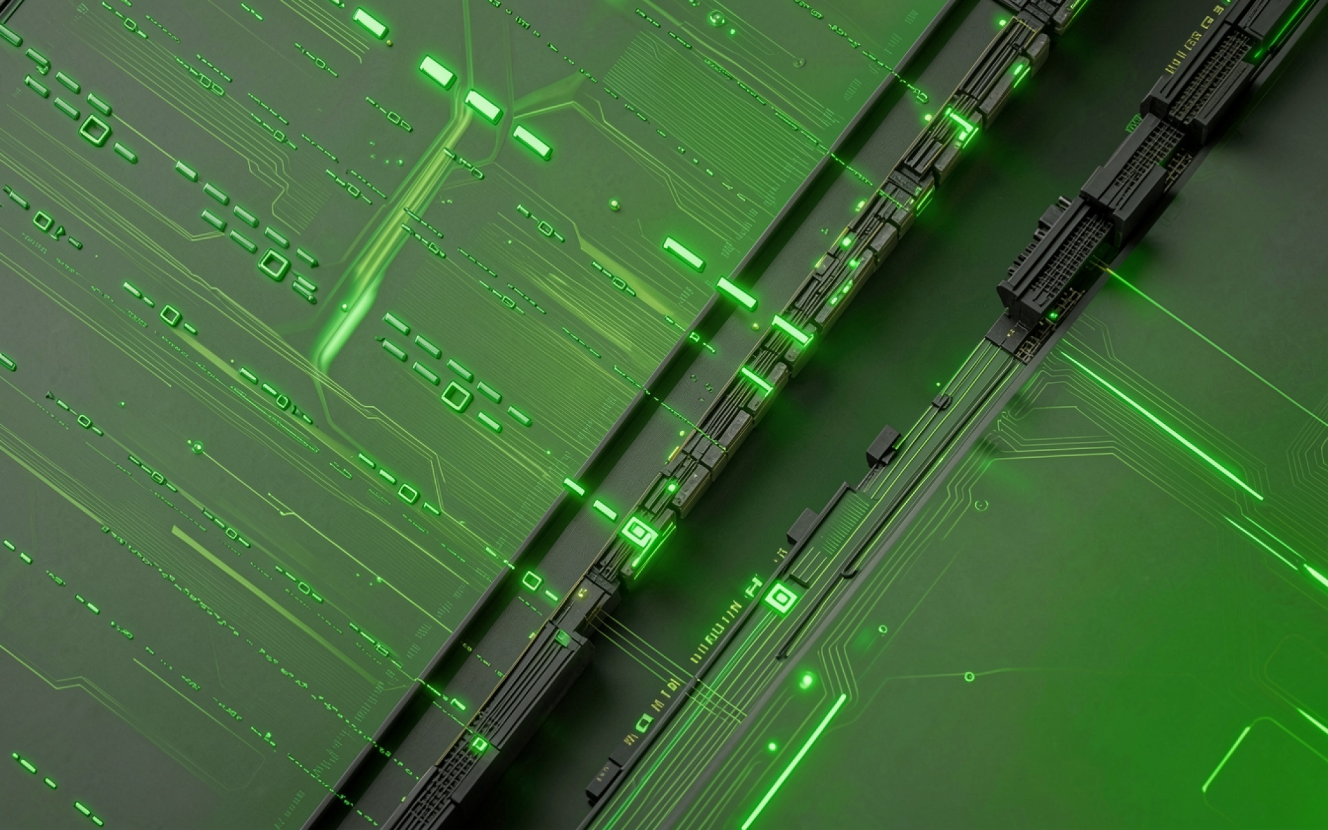 Зеленая цифровая материнская плата в киберпанке