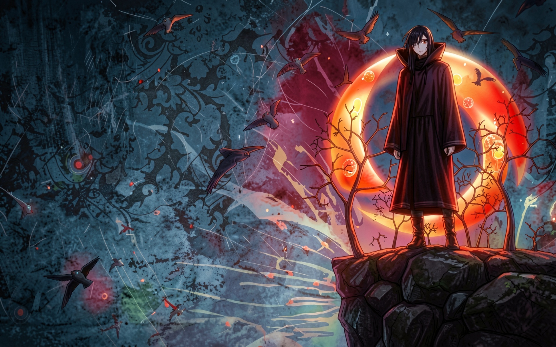 Саске Учиха в черном плаще на скале