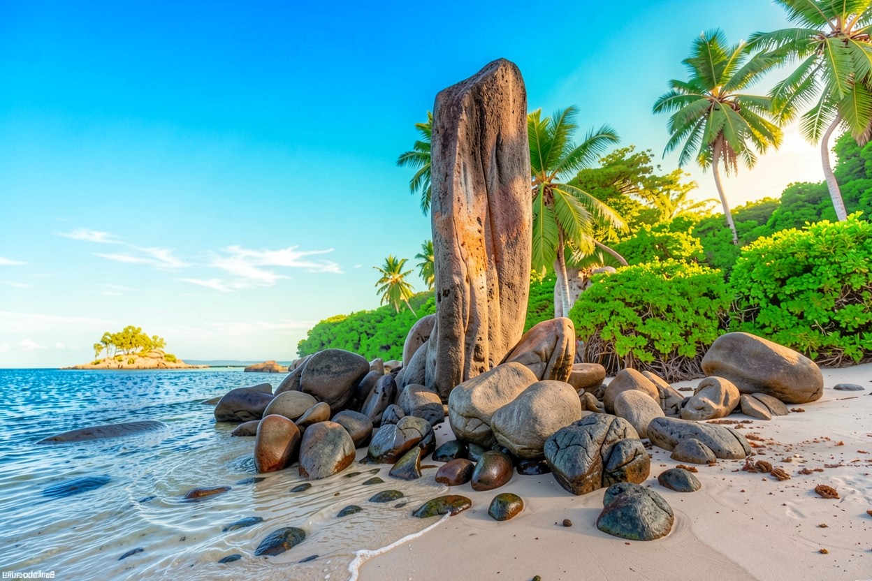 Гранитный валун на тропическом пляже Сейшел