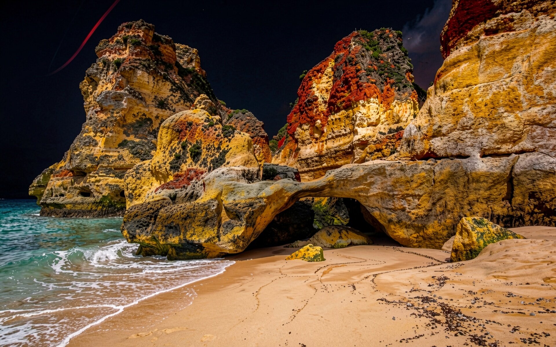 Песчаная арка на ночном побережье океана