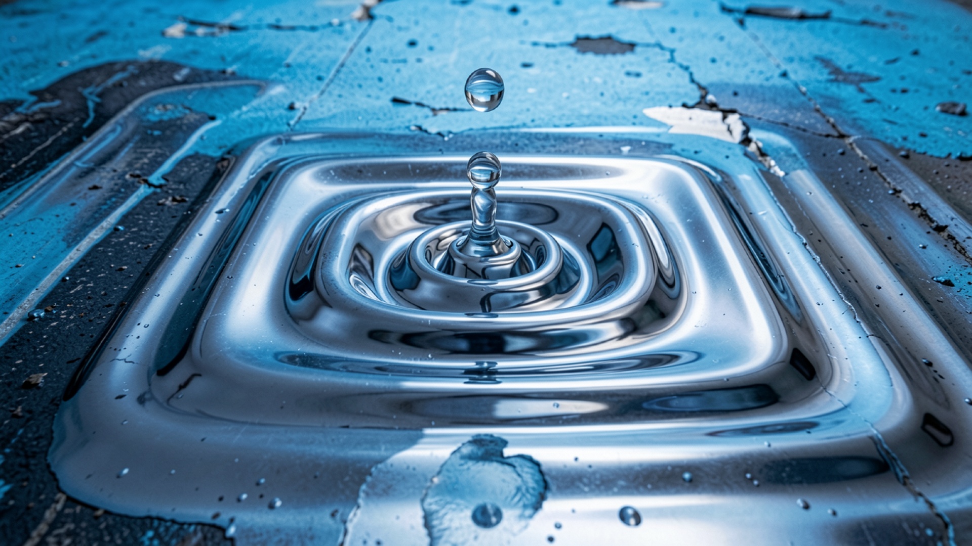 Синяя капля воды на бетонной поверхности