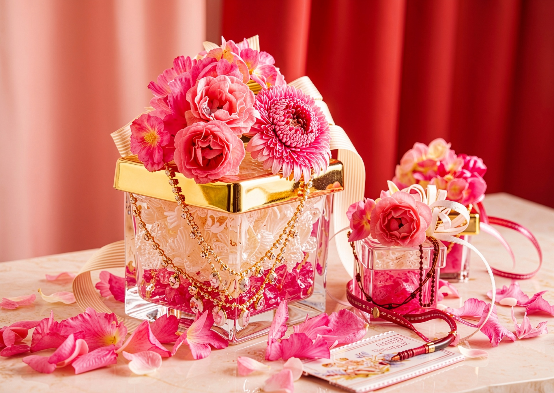 Подарочный набор розовые цветы золотая коробка