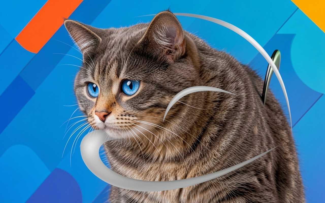 Полосатый кот с голубыми глазами в абстракции