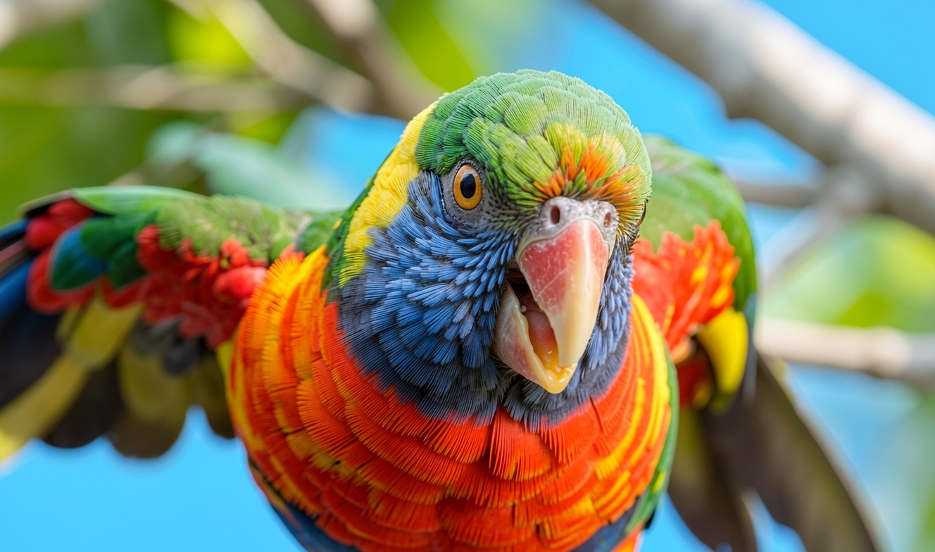 Разноцветный попугай в тропическом лесу при дневном свете