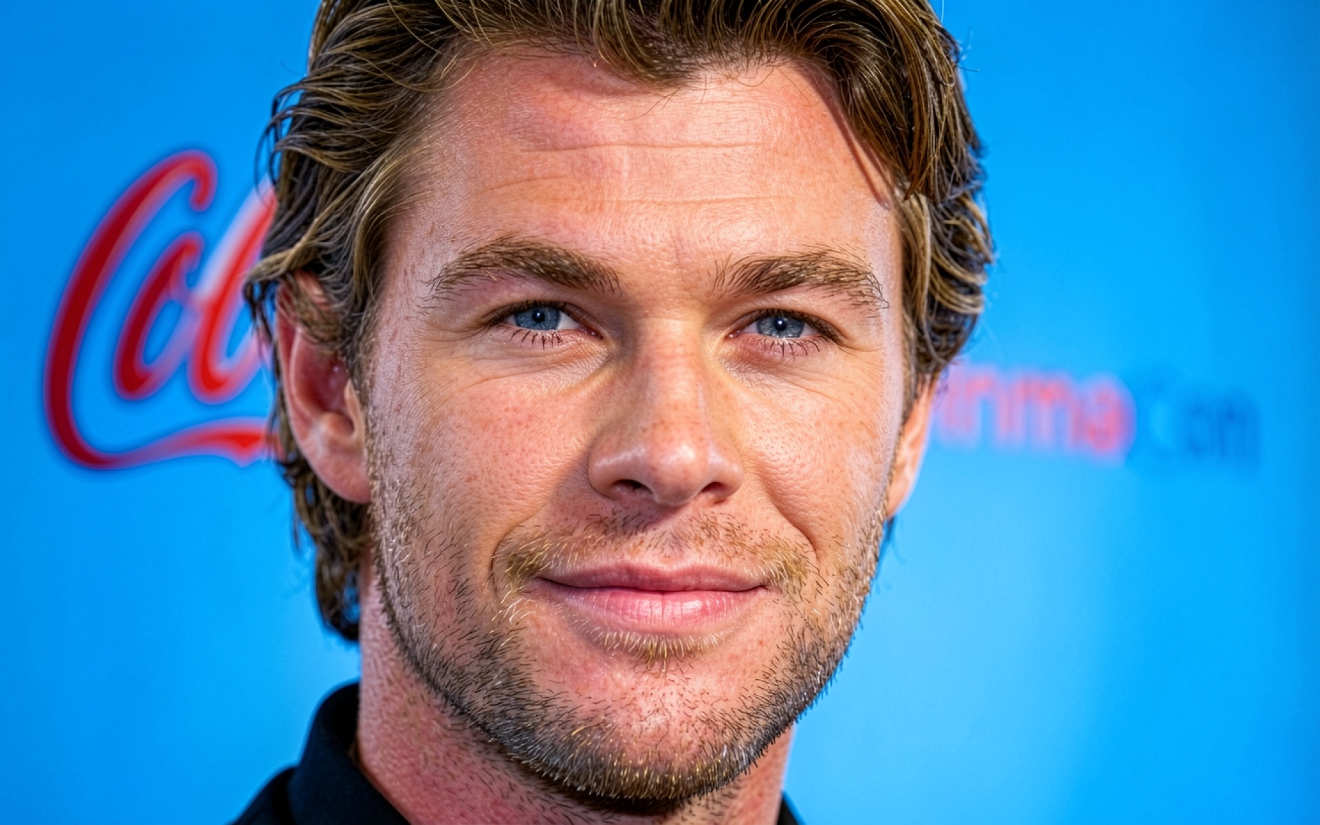 Портрет Криса Хемсворта на синем фоне