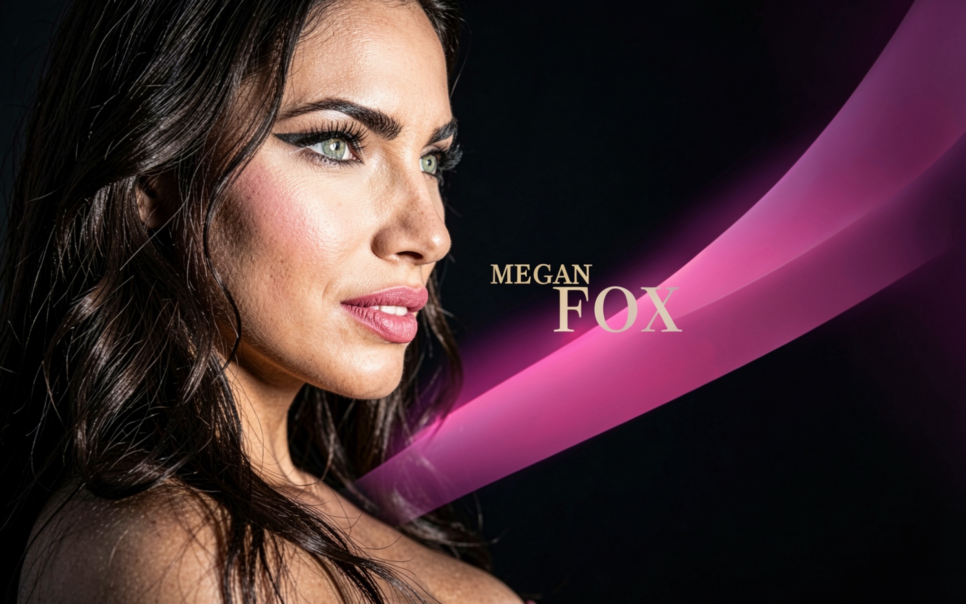 Портрет Меган Фокс в неоновом розовом свете