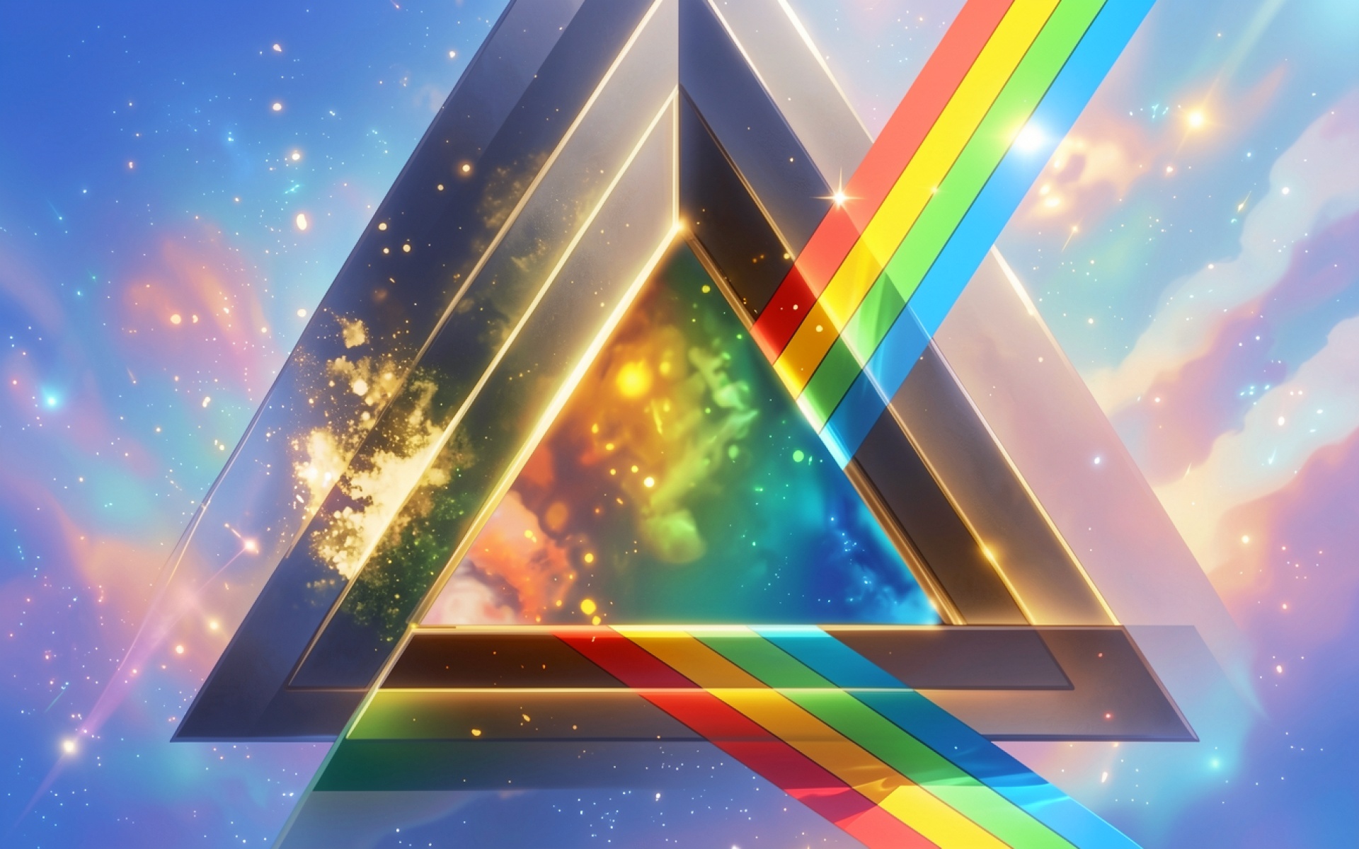 Стеклянный призматический треугольник в космическом туманном пространстве