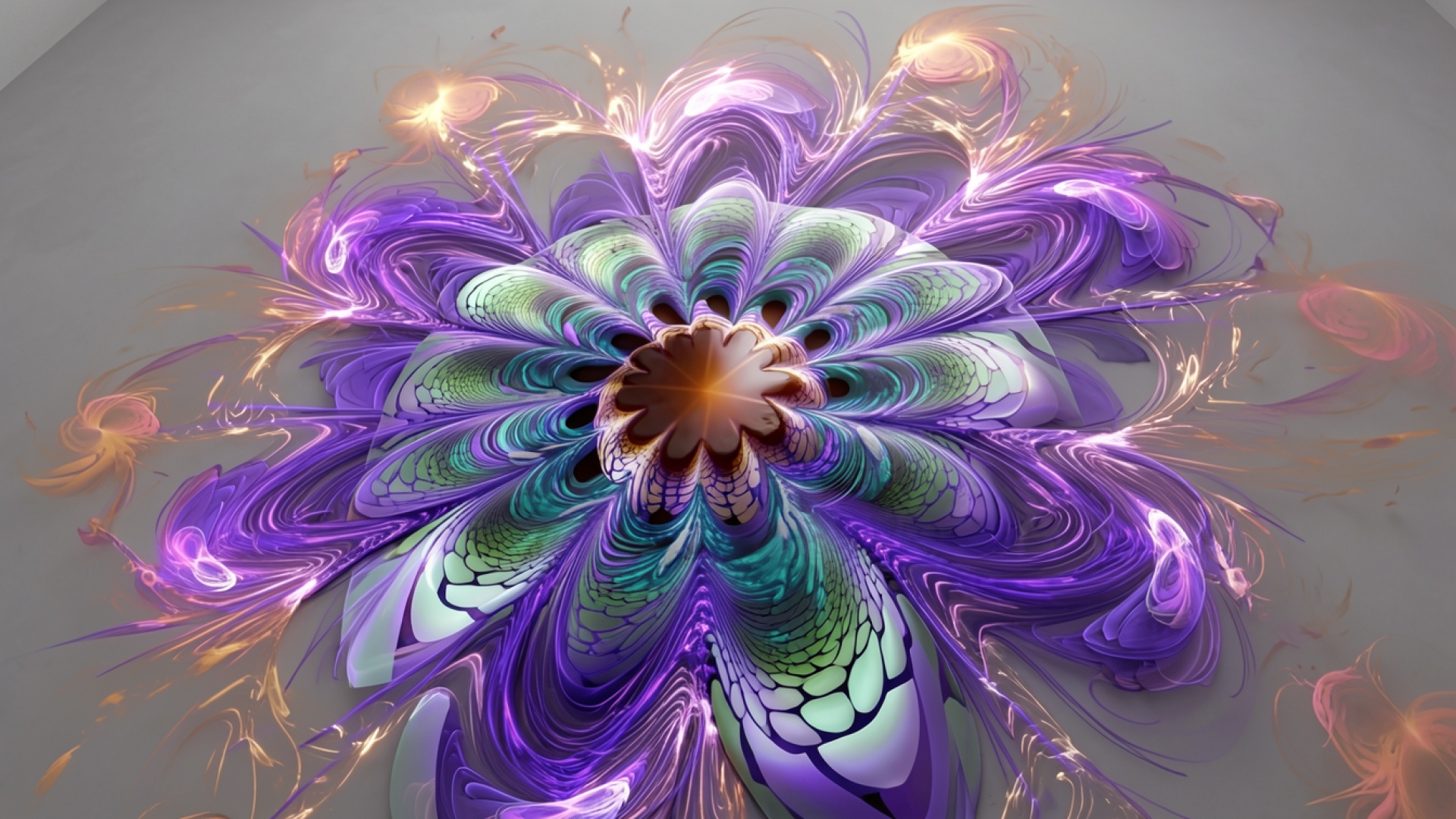 Фрактальный цветок фиолетового цвета в цифровом пространстве