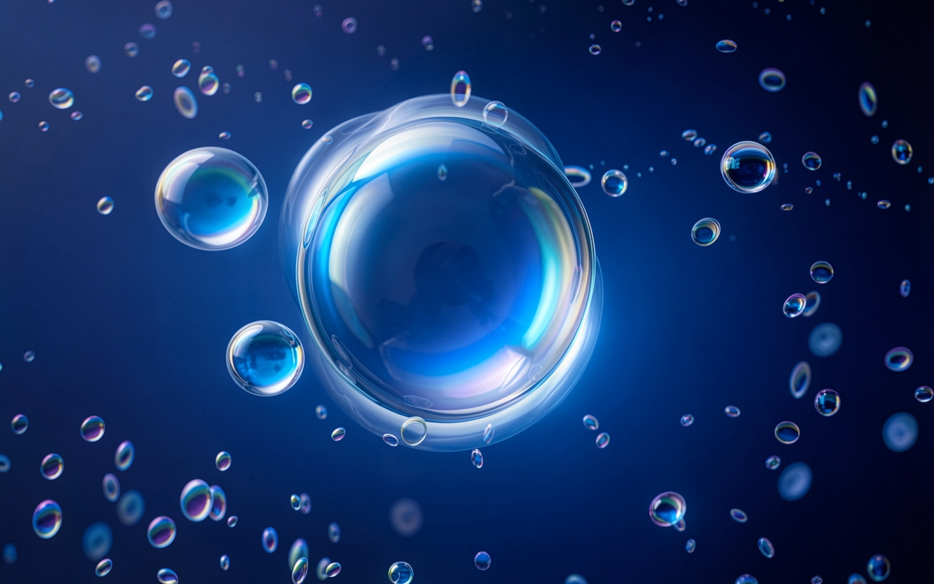 Синие стеклянные сферы в темном цифровом пространстве