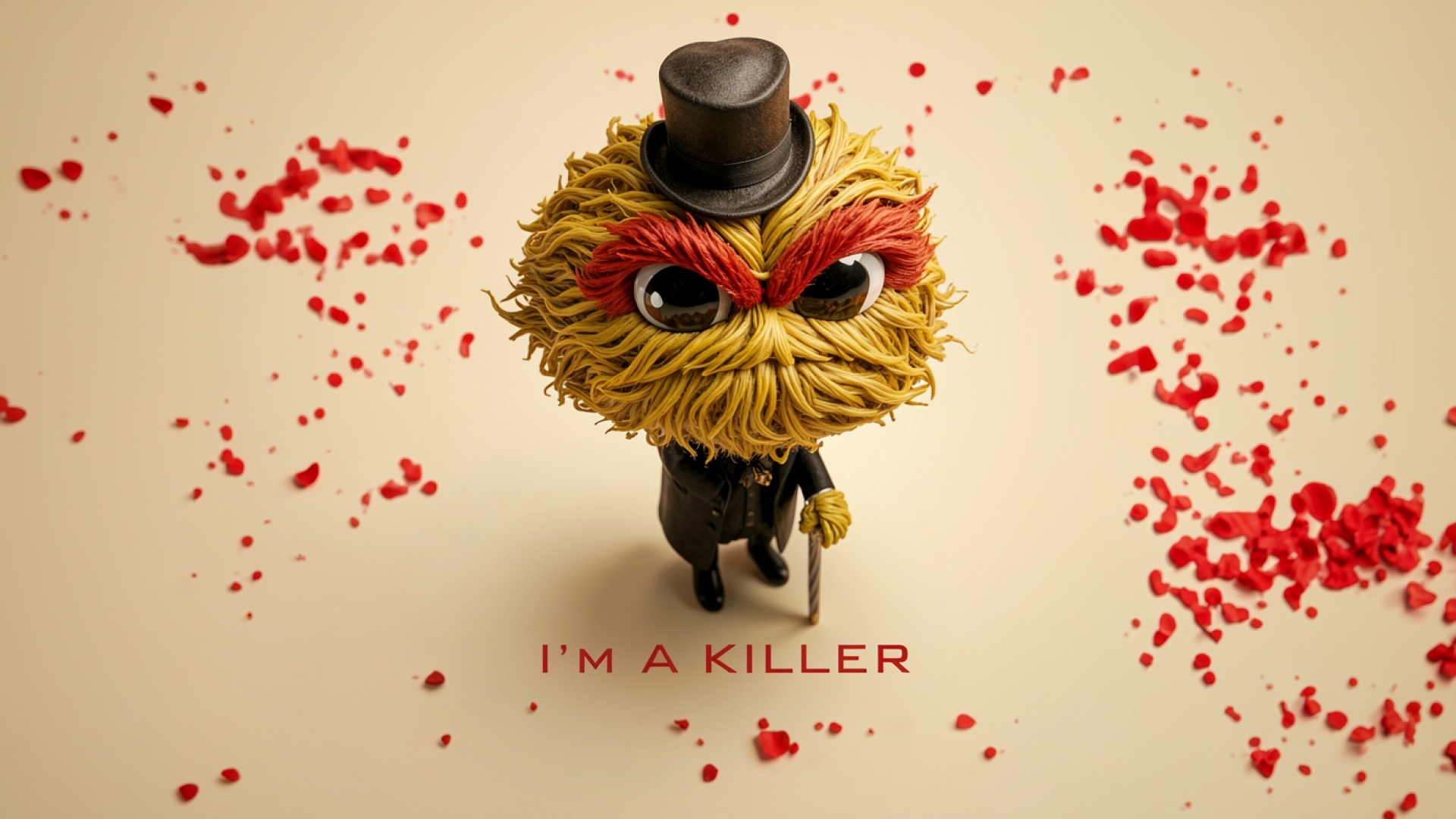 Пушистый монстр в цилиндре среди лепестков