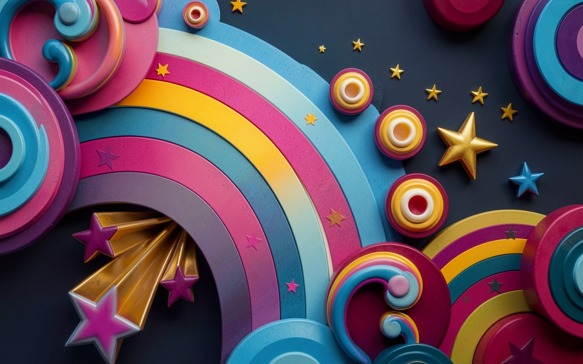 3D абстракция радуга звезды темный фон