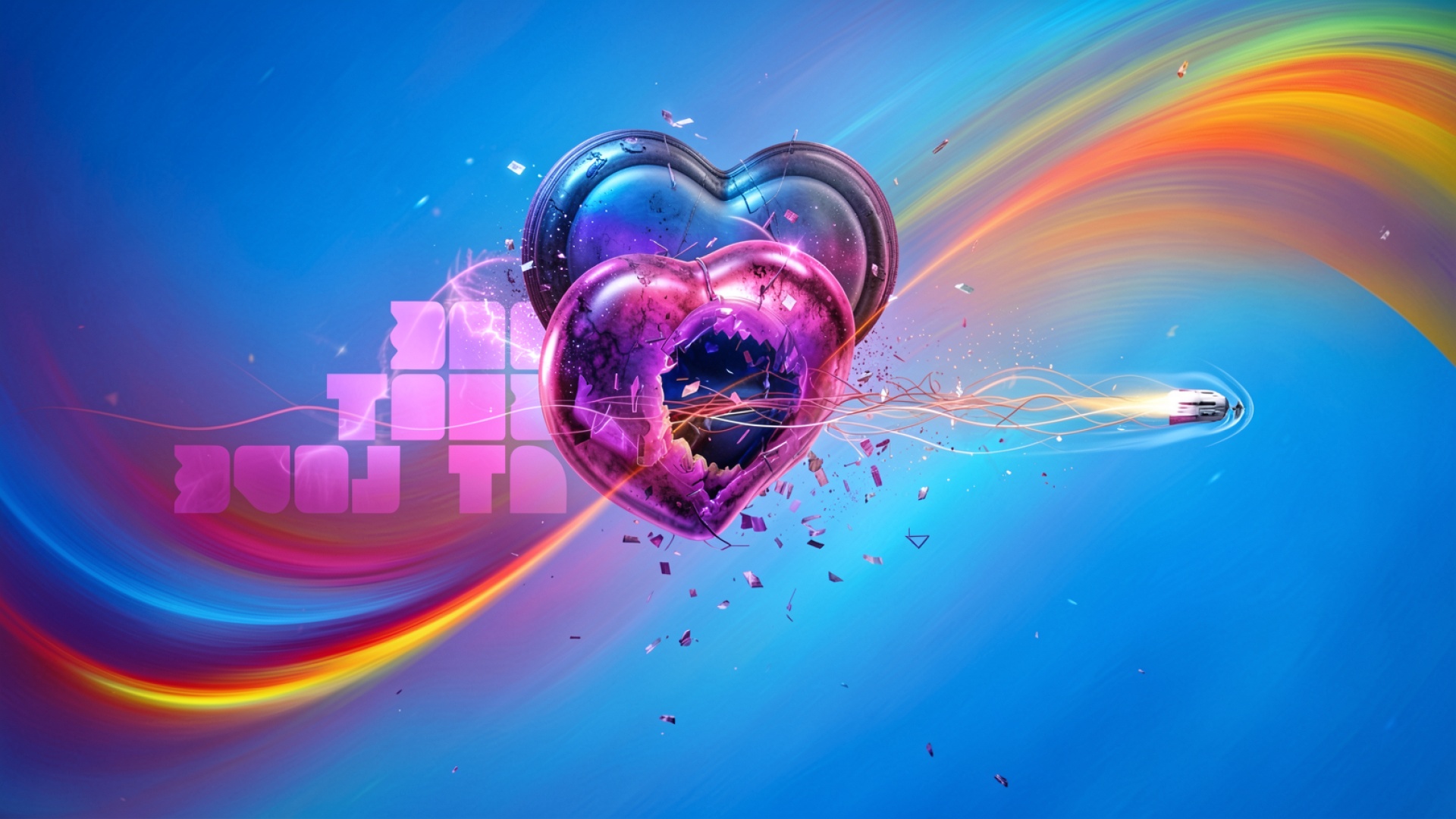 Разбитое стеклянное сердце в неоновом синем пространстве