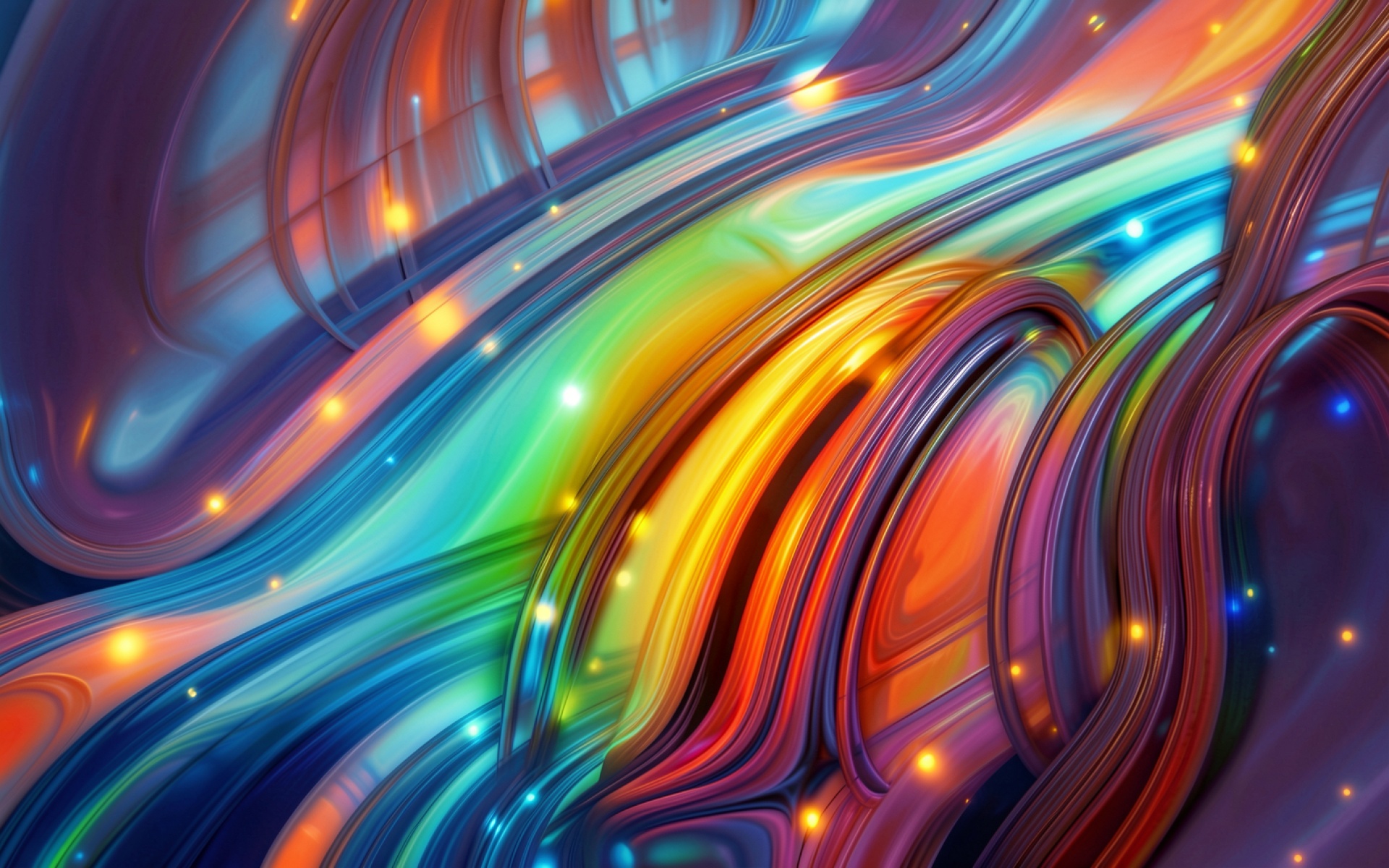 Абстрактные разноцветные стеклянные волны в темном пространстве