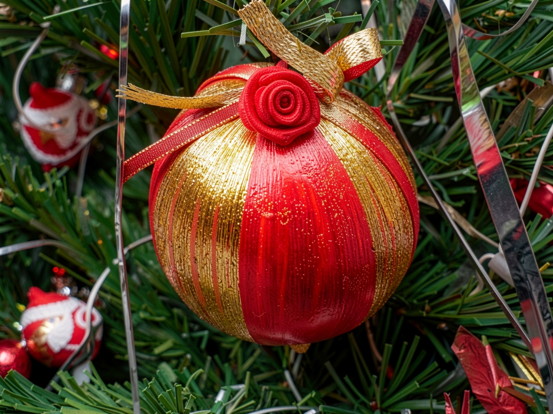 Золотой и красный рождественский шар с розой