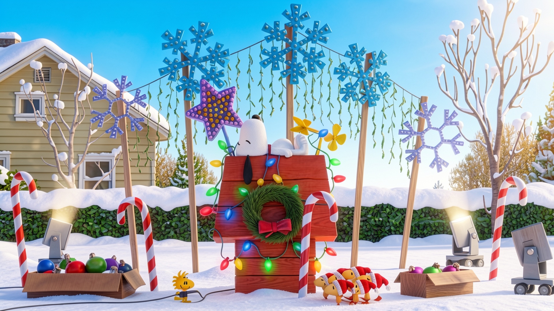 Пес Снупи в зимнем рождественском декоре