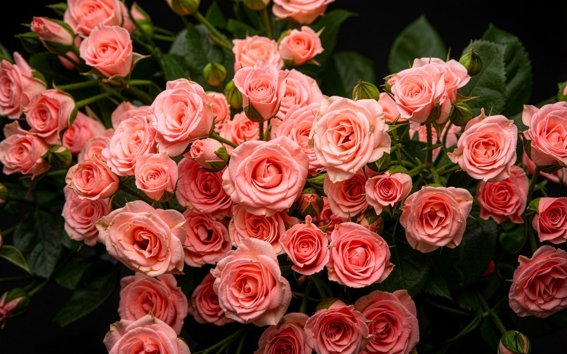Букет розовых роз на черном фоне