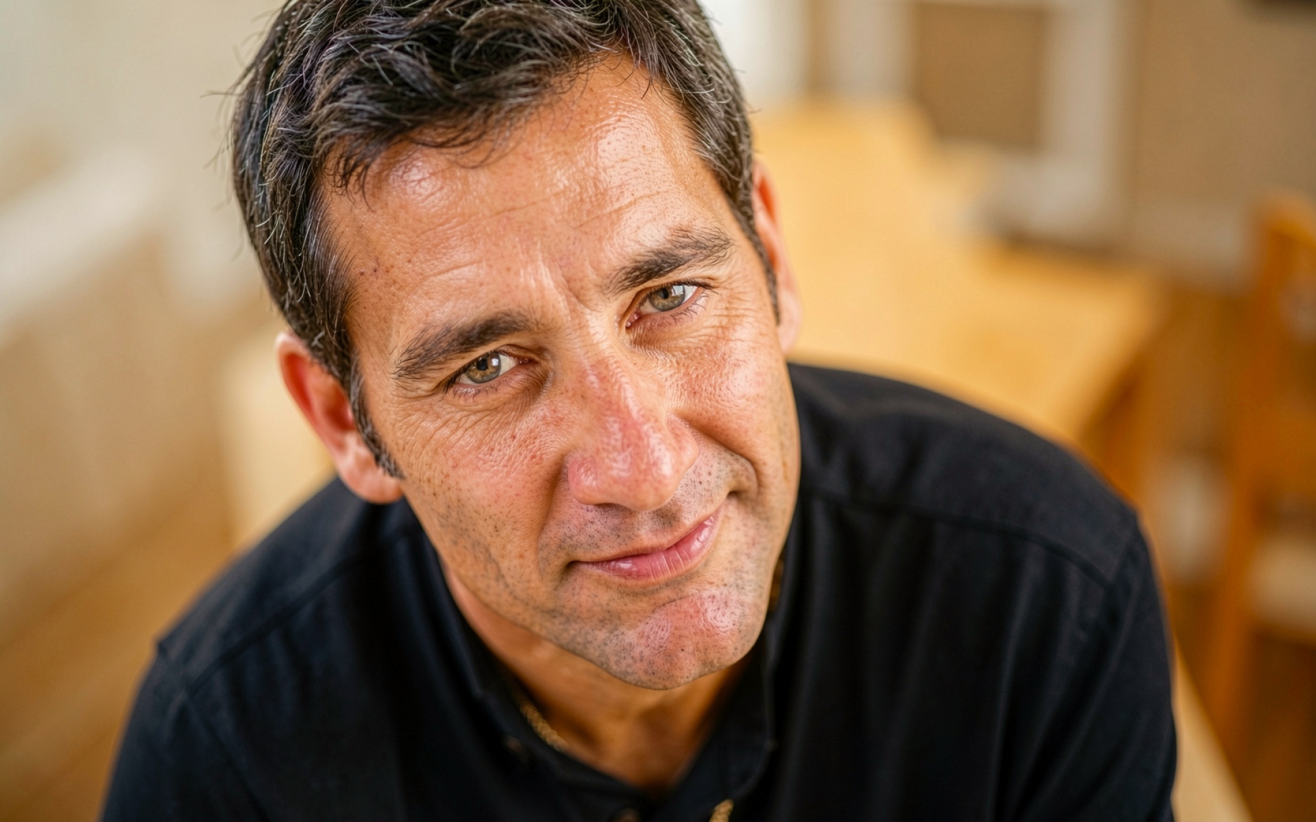 Портрет мужчины в черной рубашке теплый свет