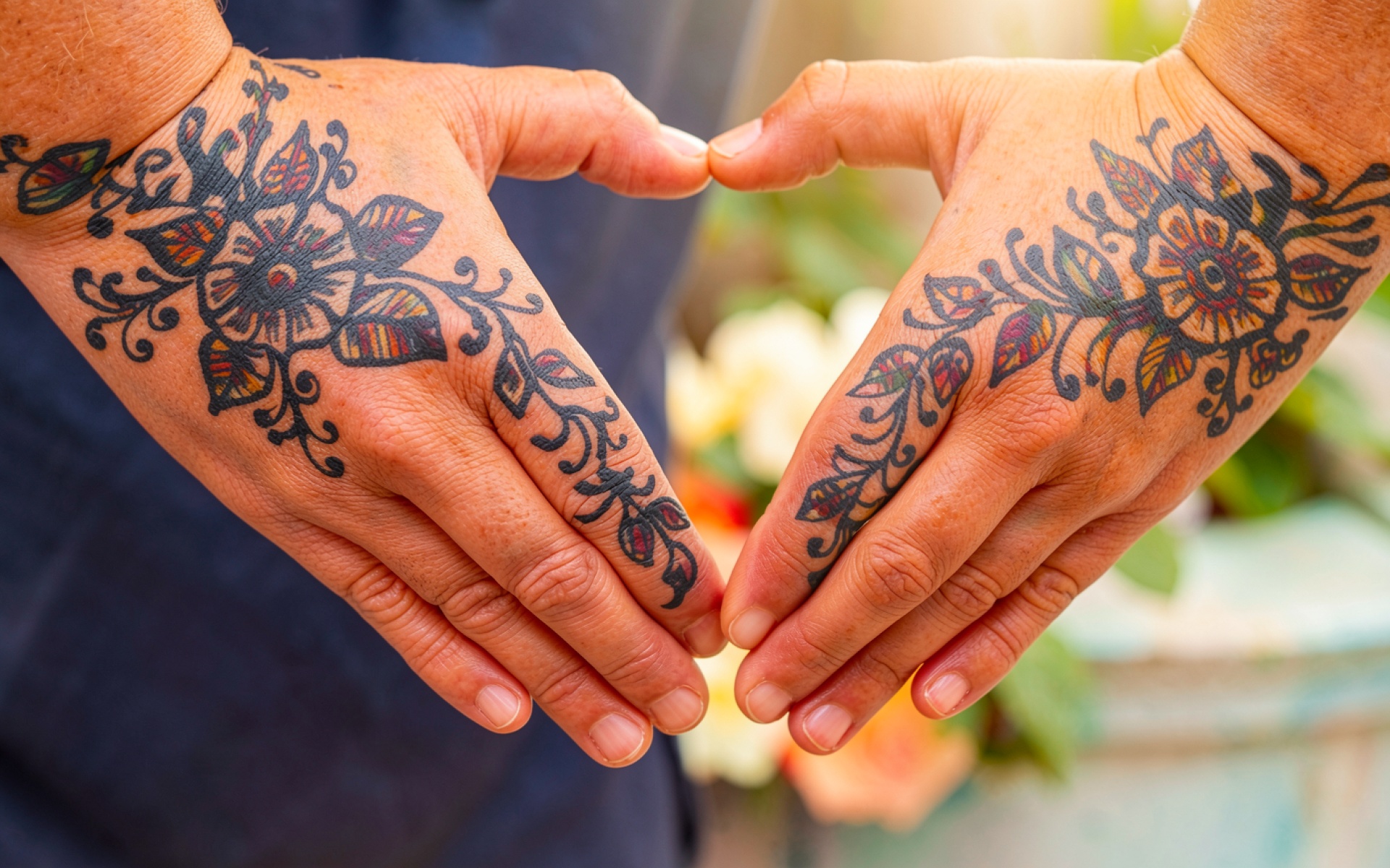 Руки с цветочными татуировками в форме сердца