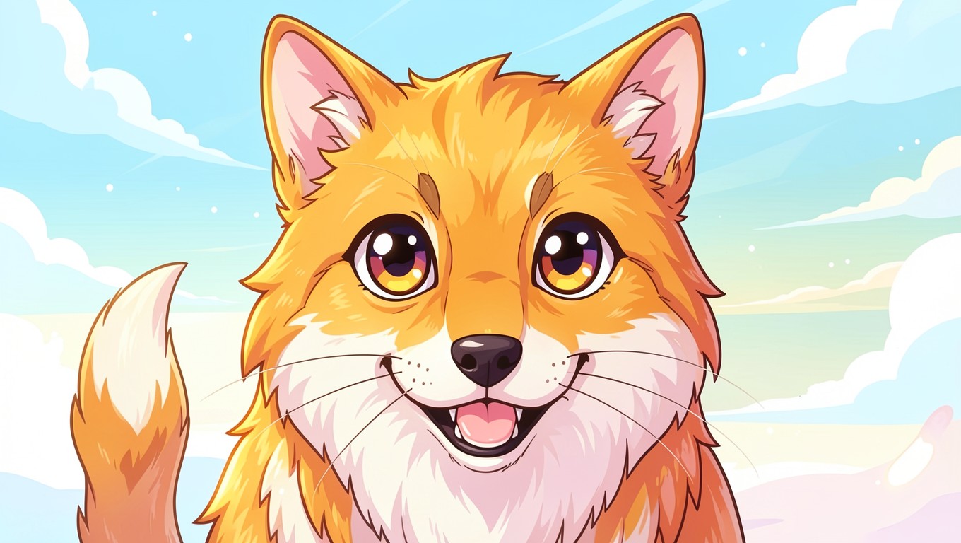 Рыжий лис в стиле аниме на фоне неба