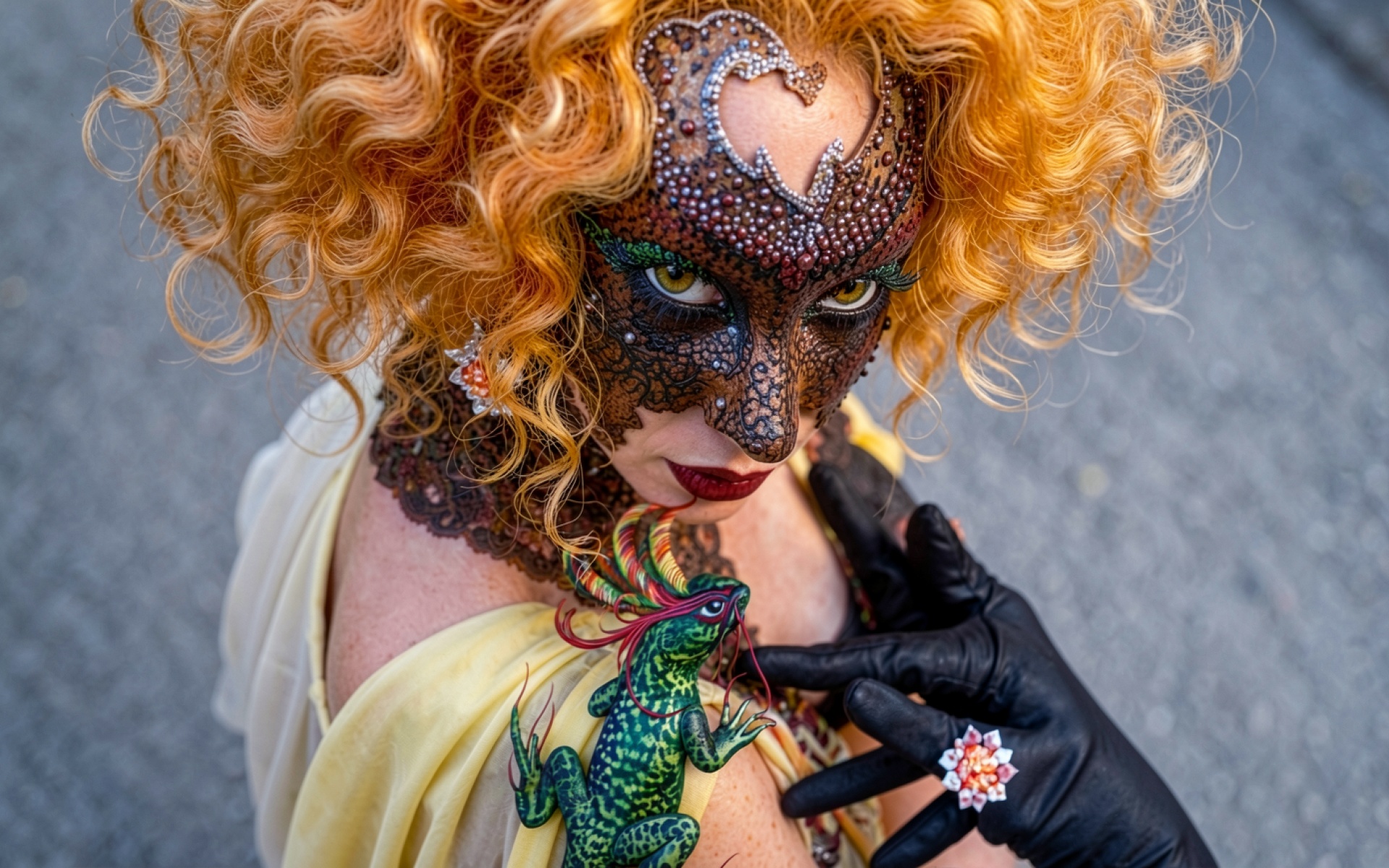 Девушка с рыжими волосами и ящерицей