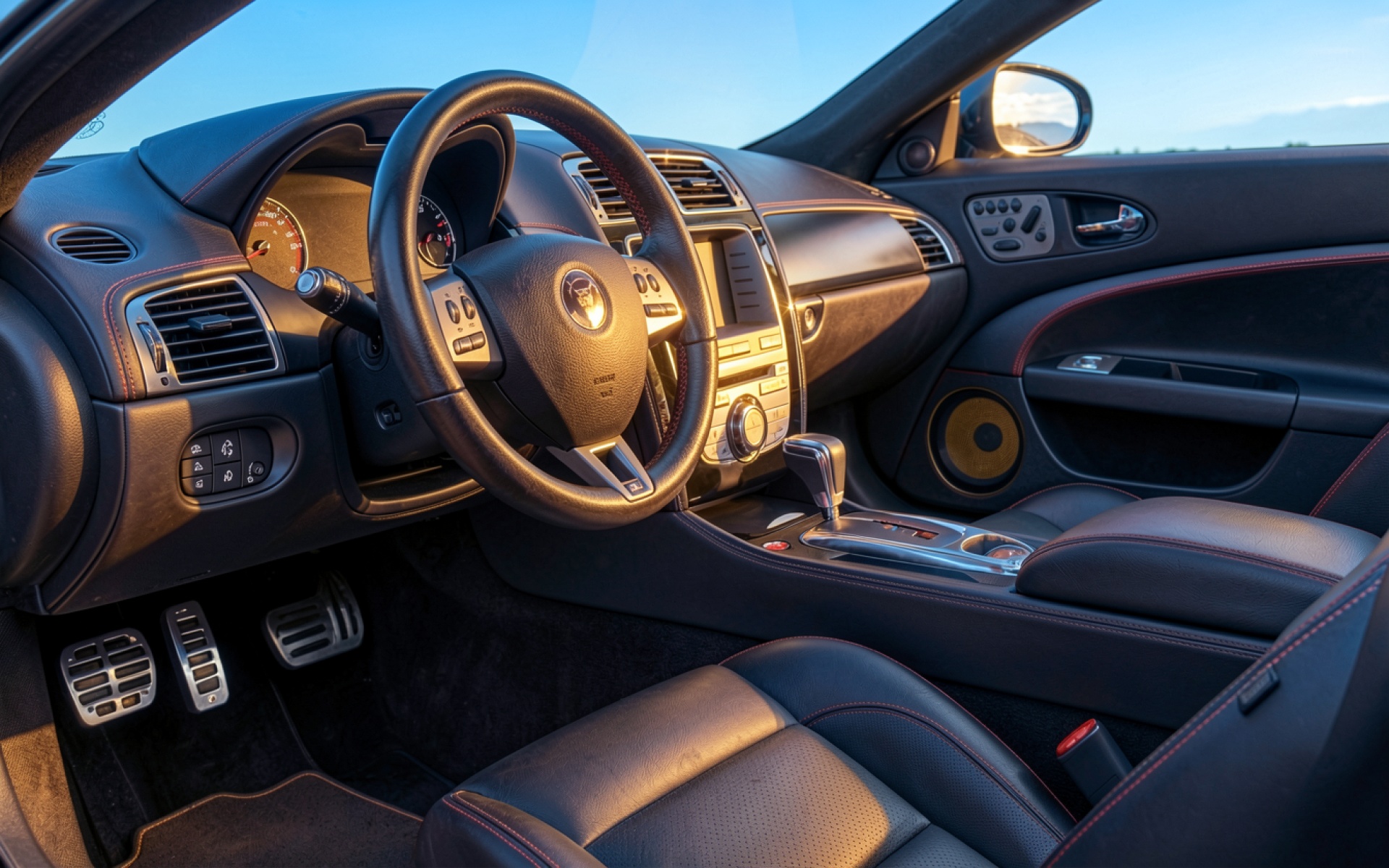 Интерьер автомобиля Jaguar черный кожаный салон