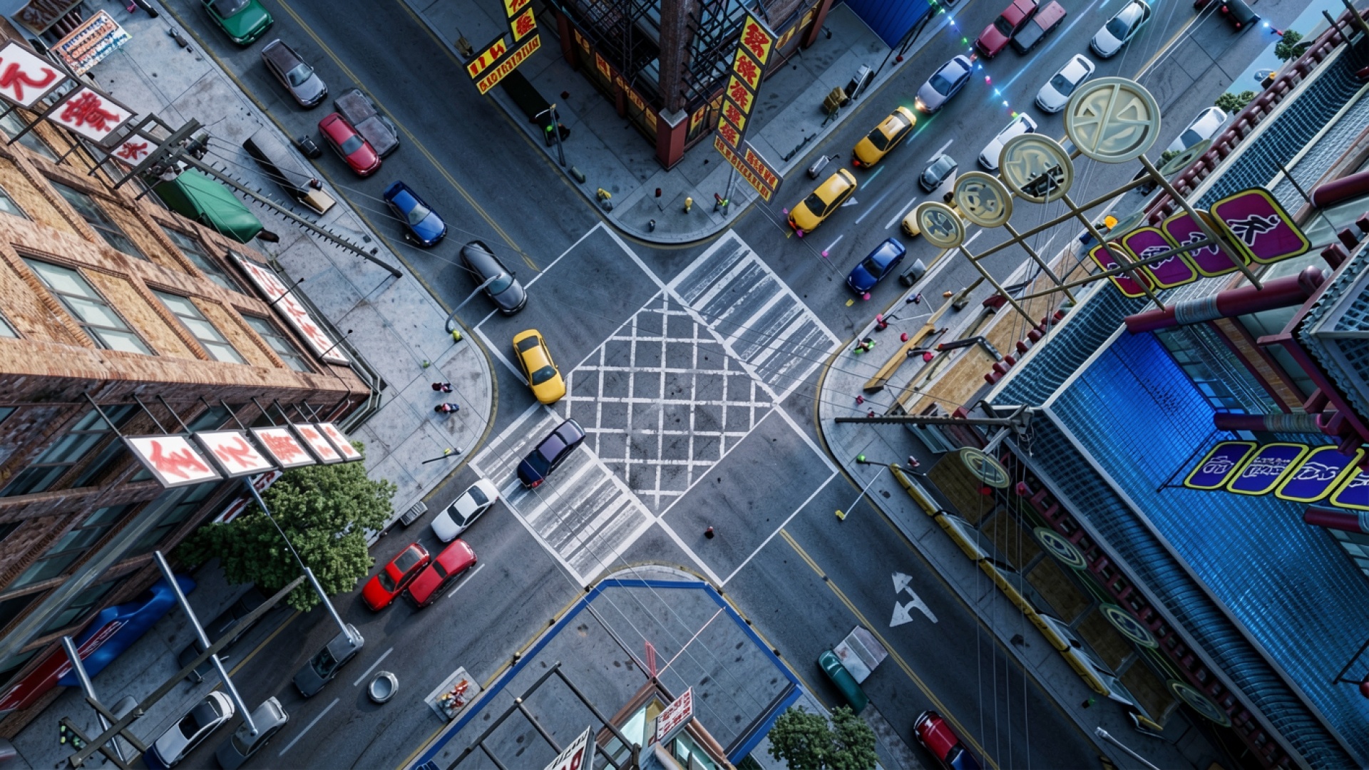Перекресток Чайна-тауна вид сверху в городе