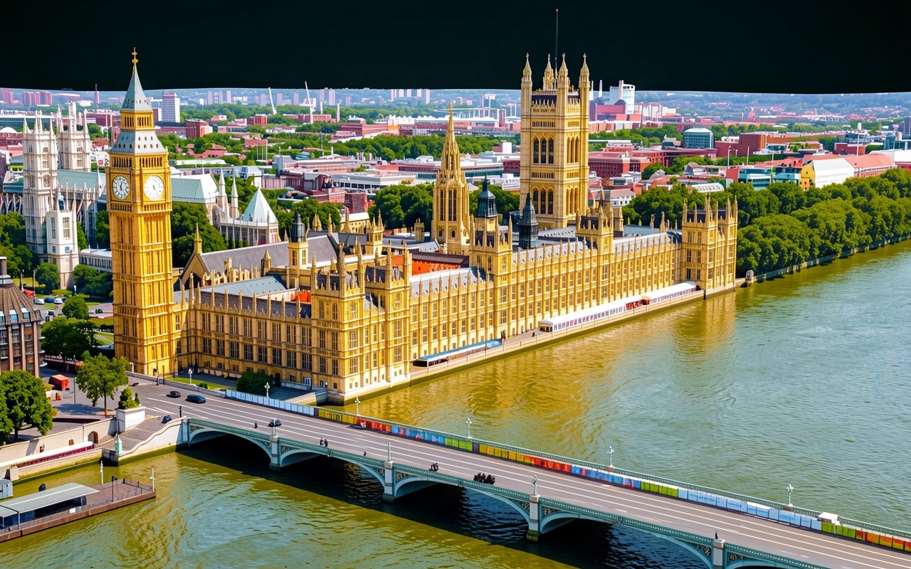 Здание Вестминстерского дворца золотистый солнечный свет Лондон
