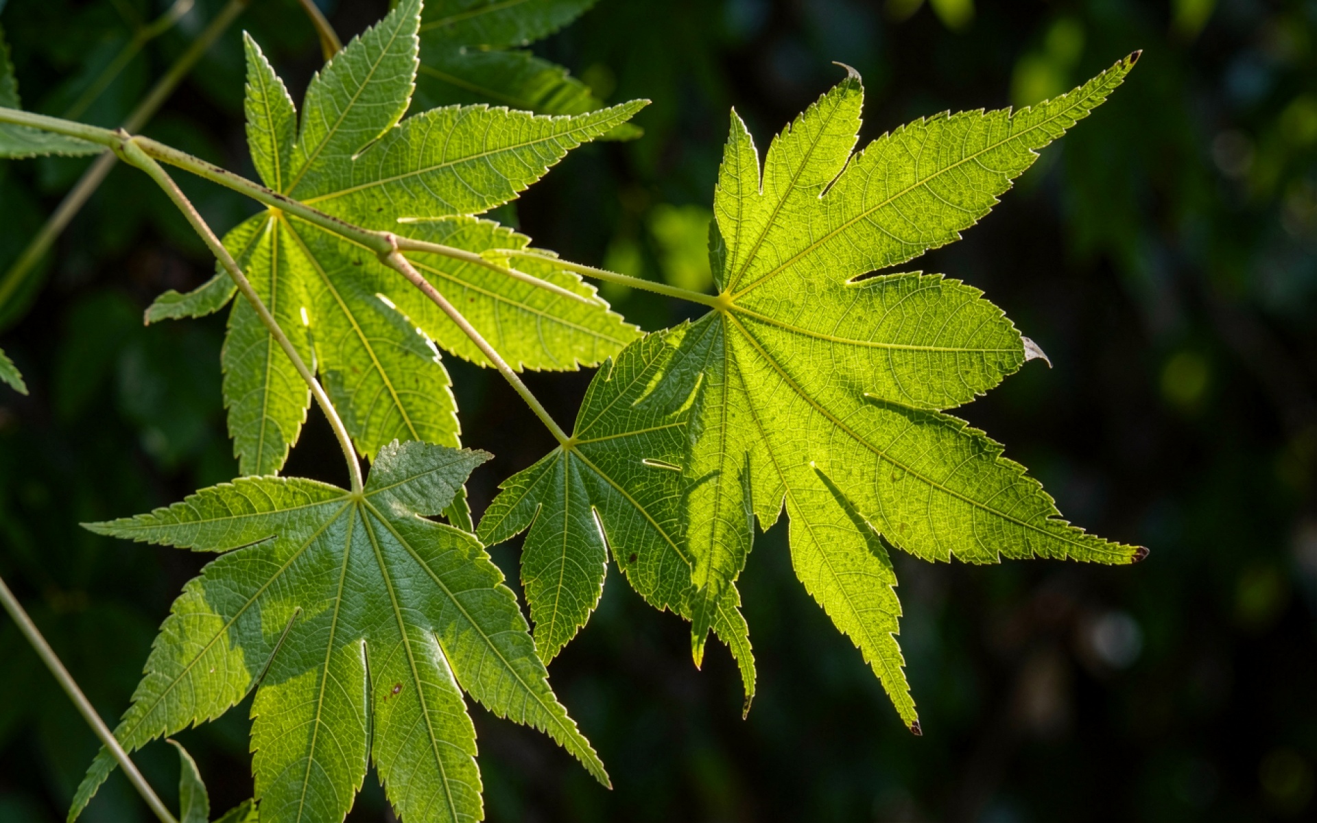 Зеленые листья клена в солнечном свете