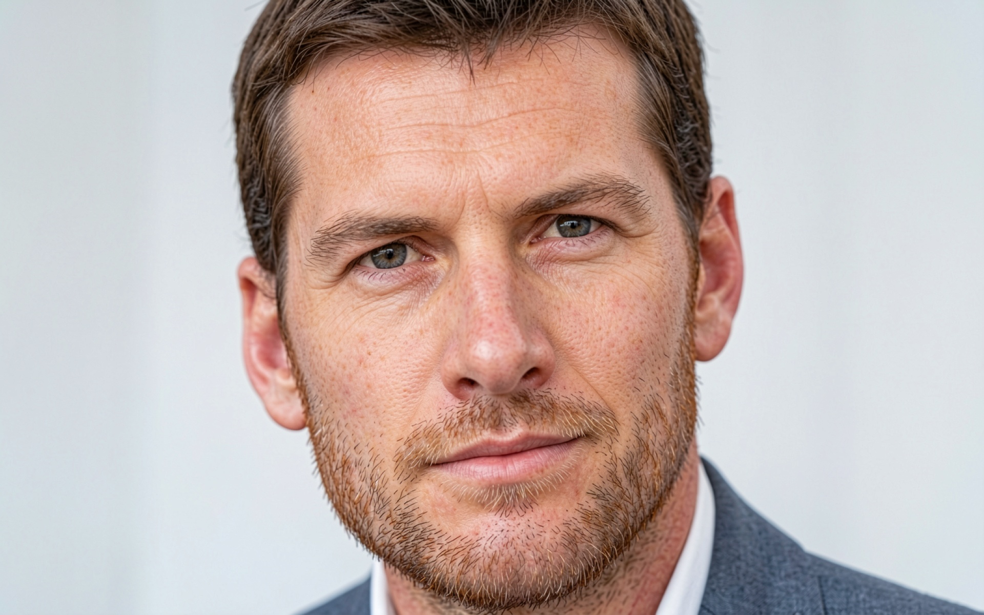 Портрет мужчины в сером костюме светлый фон