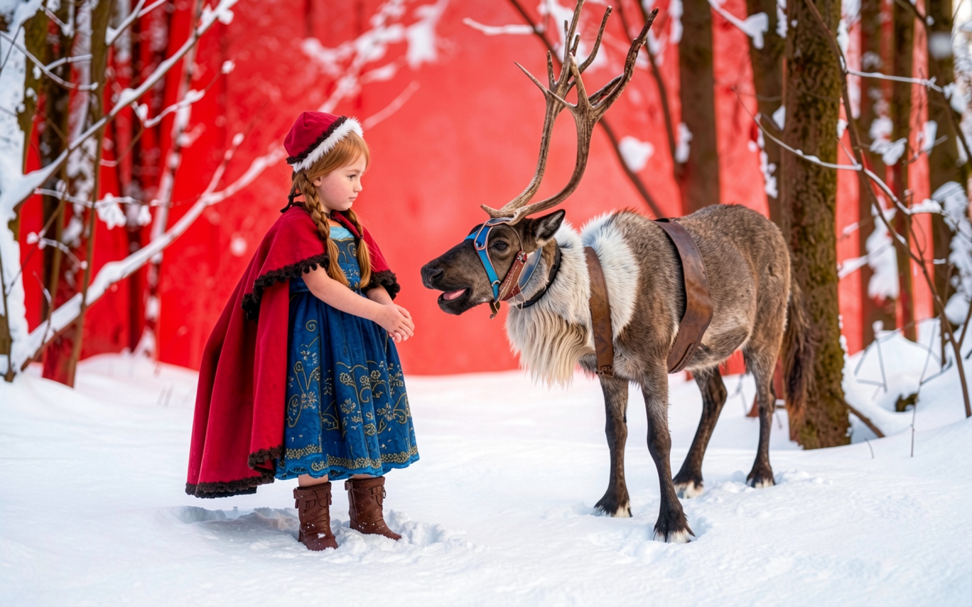 Девочка в красном плаще и северный олень